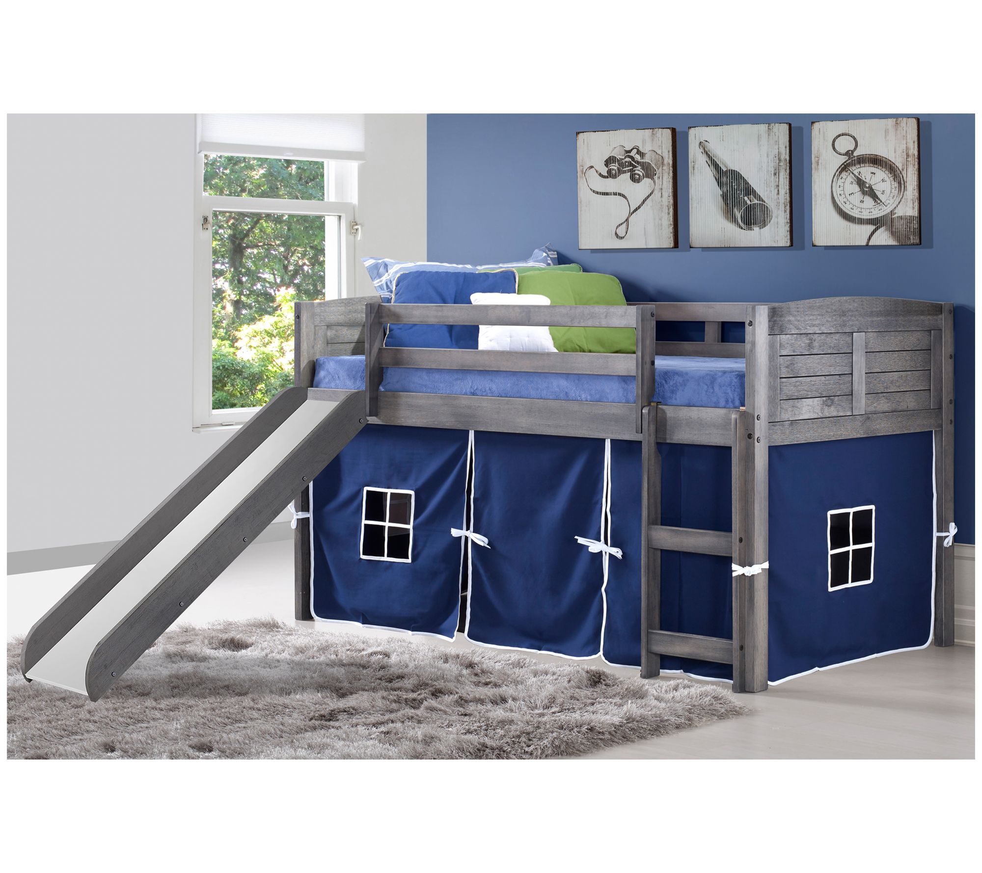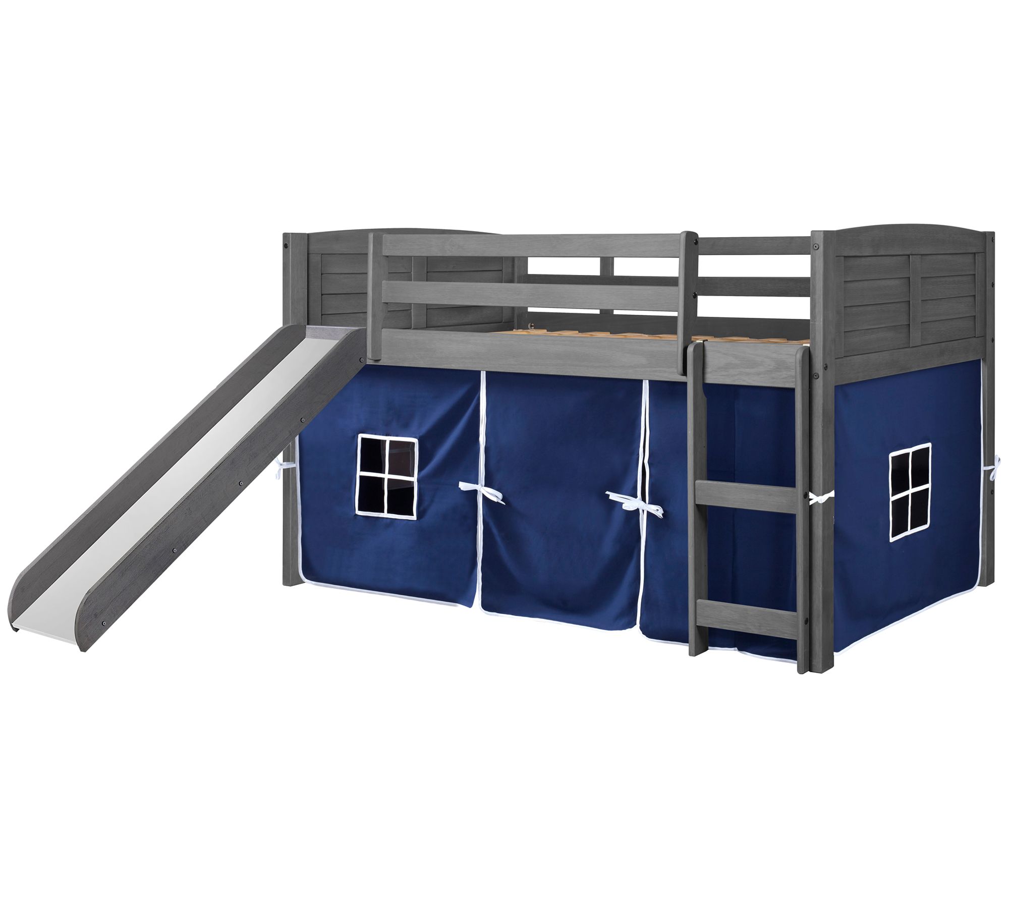 Donco Kids Twin Louver Low Loft Bed w/Slide & Solid Tent Kit