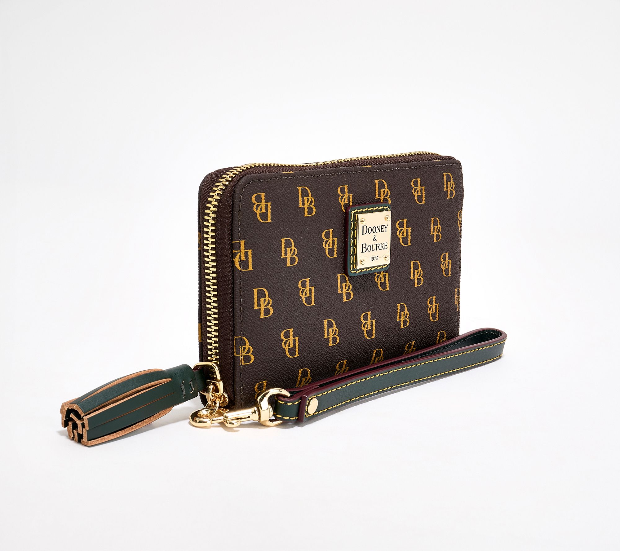 A busy day of errands or a spontaneous night out calls for something that keeps your must-haves close at hand. This wristlet fits bills, cards, and your phone easily, thanks to organized interior pockets and card slots, while its coated cotton finish adds both durability and a touch of style. Carry it solo by the strap or pop it in your tote for quick grab-and-go access. From Dooney & Bourke.