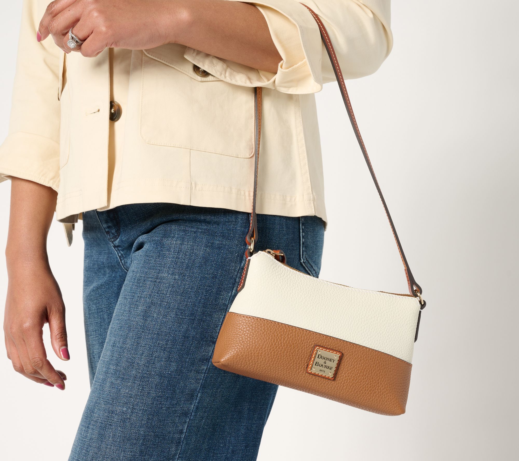 Why limit yourself to a single shade? The right-sized Izzy rocks a cool color block design in luscious pebble leather. (Think of the shoe/belt coordinating opportunities!) Such a cute addition to your everyday collection. From Dooney & Bourke.