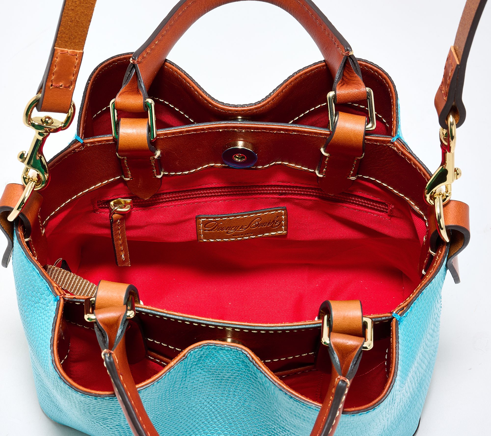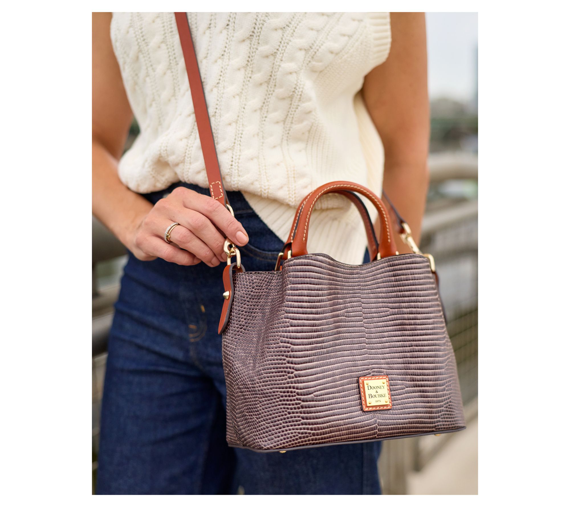Whether heading to brunch or navigating a busy day, this leather mini satchel brings style and ease to your routine. The top handles offer a chic handheld look, or use the adjustable shoulder strap for hands-free convenience. Thoughtfully designed interior and exterior pockets help keep your phone, keys, and cards within easy reach. From Dooney & Bourke.