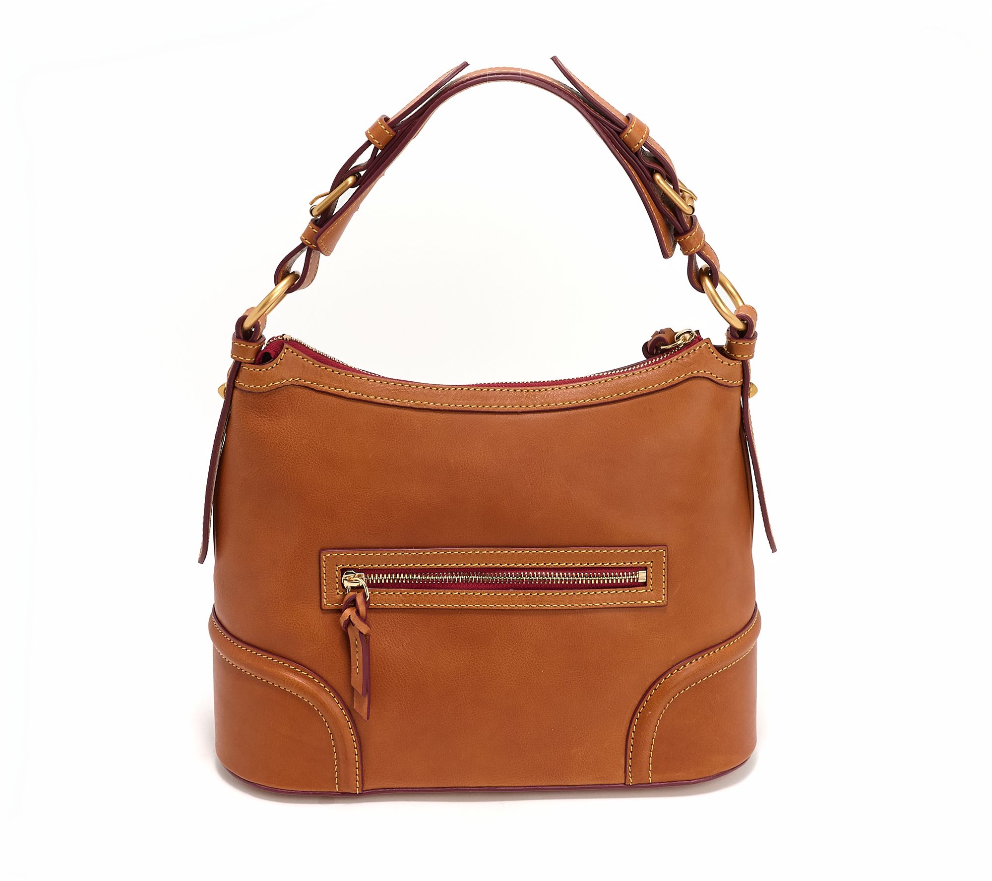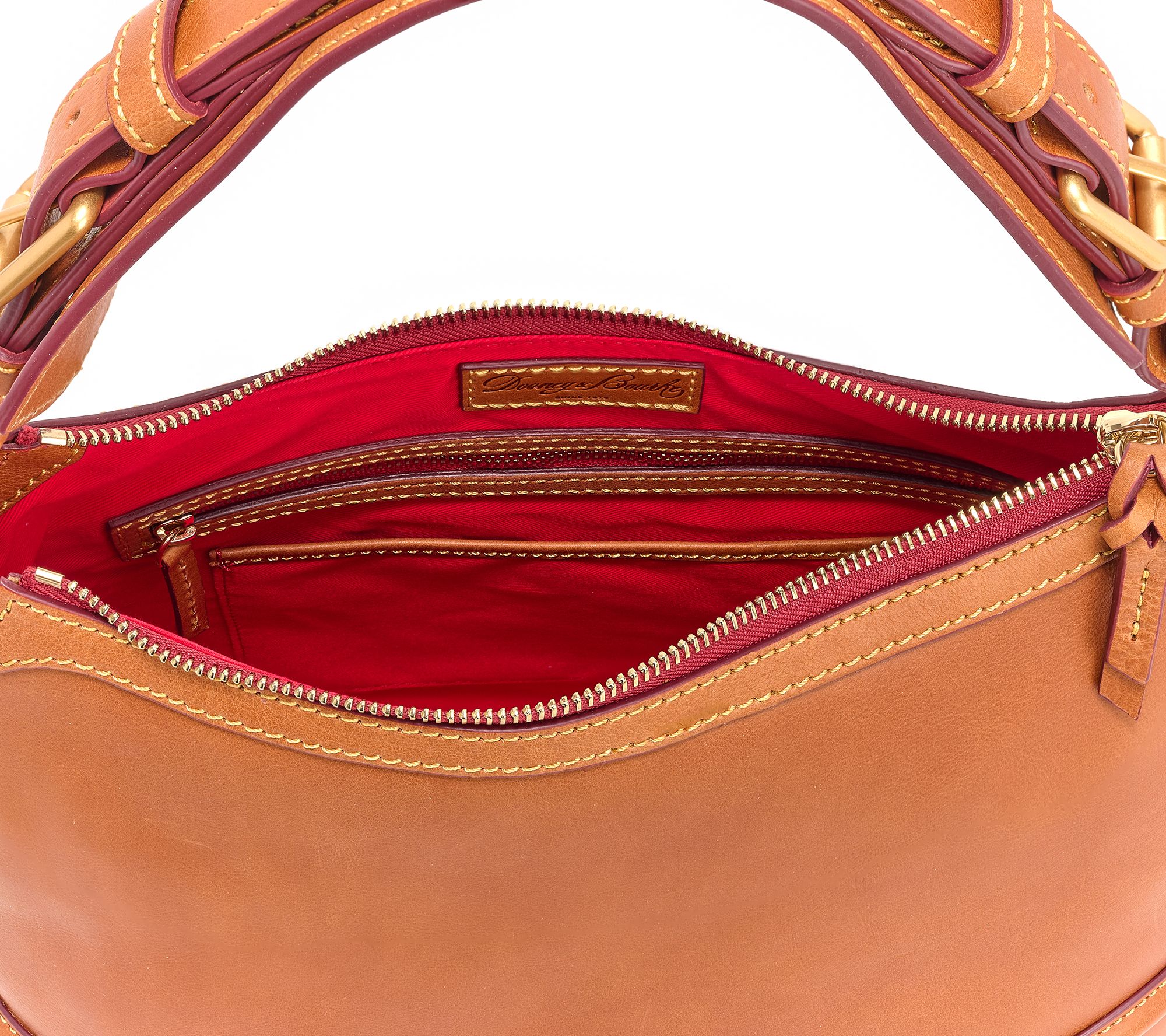 Running errands or heading to lunch is a little easier with this polished leather hobo bag, which keeps essentials in order with exterior and interior pockets, a key hook, and a secure zipper closure. The adjustable handle sits comfortably on your shoulder, while sturdy bottom feet help keep the silhouette crisp whenever you set it down. From Dooney & Bourke.