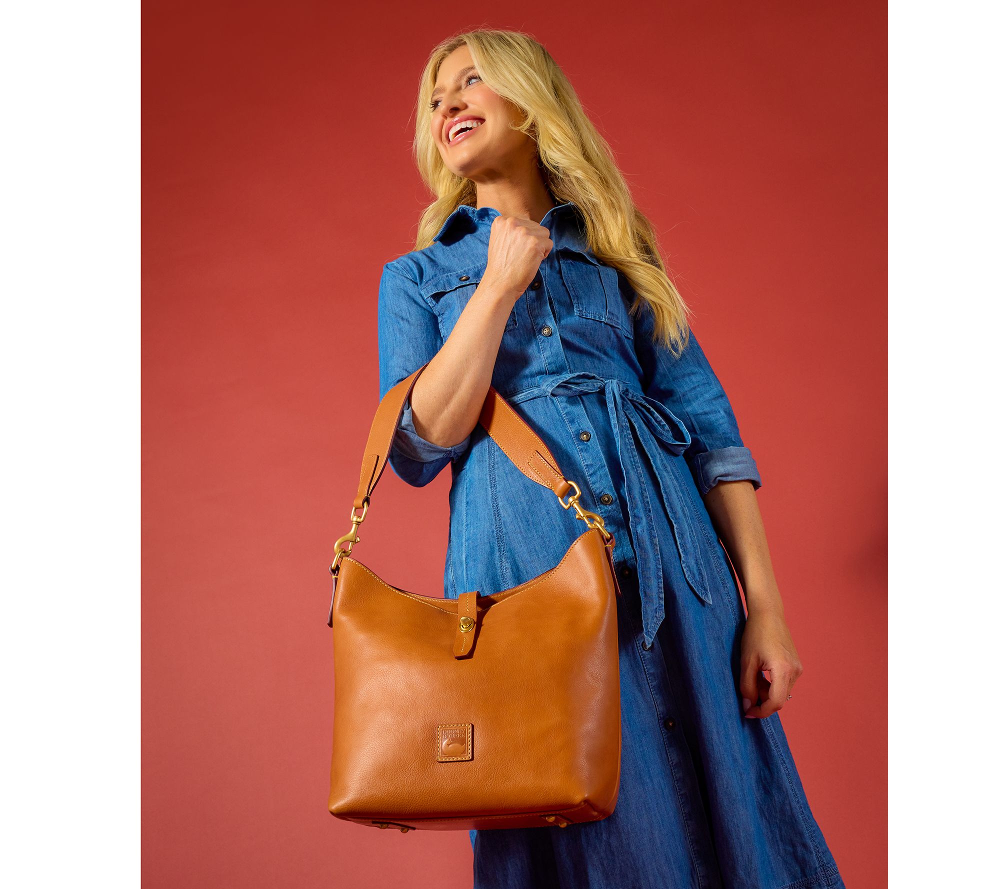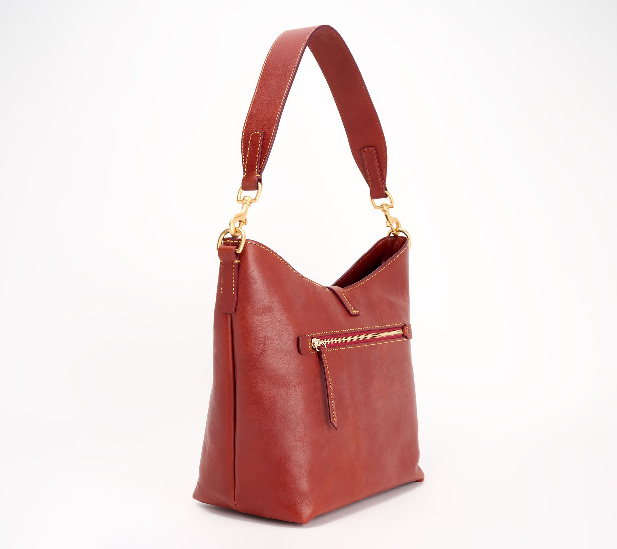Need your space? This large leather sac has plenty to spare, with a plethora of pockets and a key hook inside a roomy tote-like silhouette. And in forever-chic Florentine leather, it vibes with your work looks, travel style, and everything in between. From Dooney & Bourke.