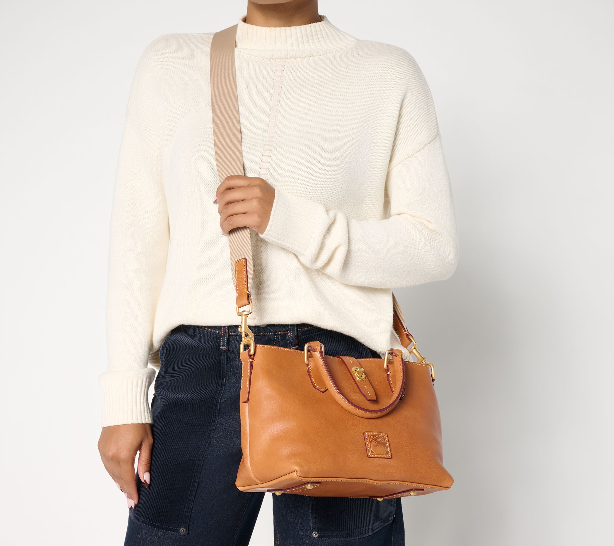 From early meetings to spontaneous weekend outings, this Florentine leather satchel brings a classic touch to any ensemble and makes organizing your essentials effortless. The option to switch from double handles to a removable strap means you can carry it your way, while ample pocket space inside and out keeps everything in its place for smooth days ahead. From Dooney & Bourke.