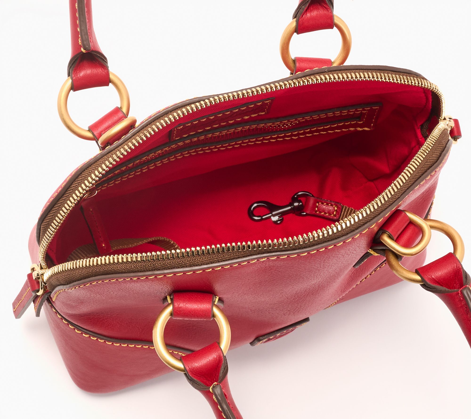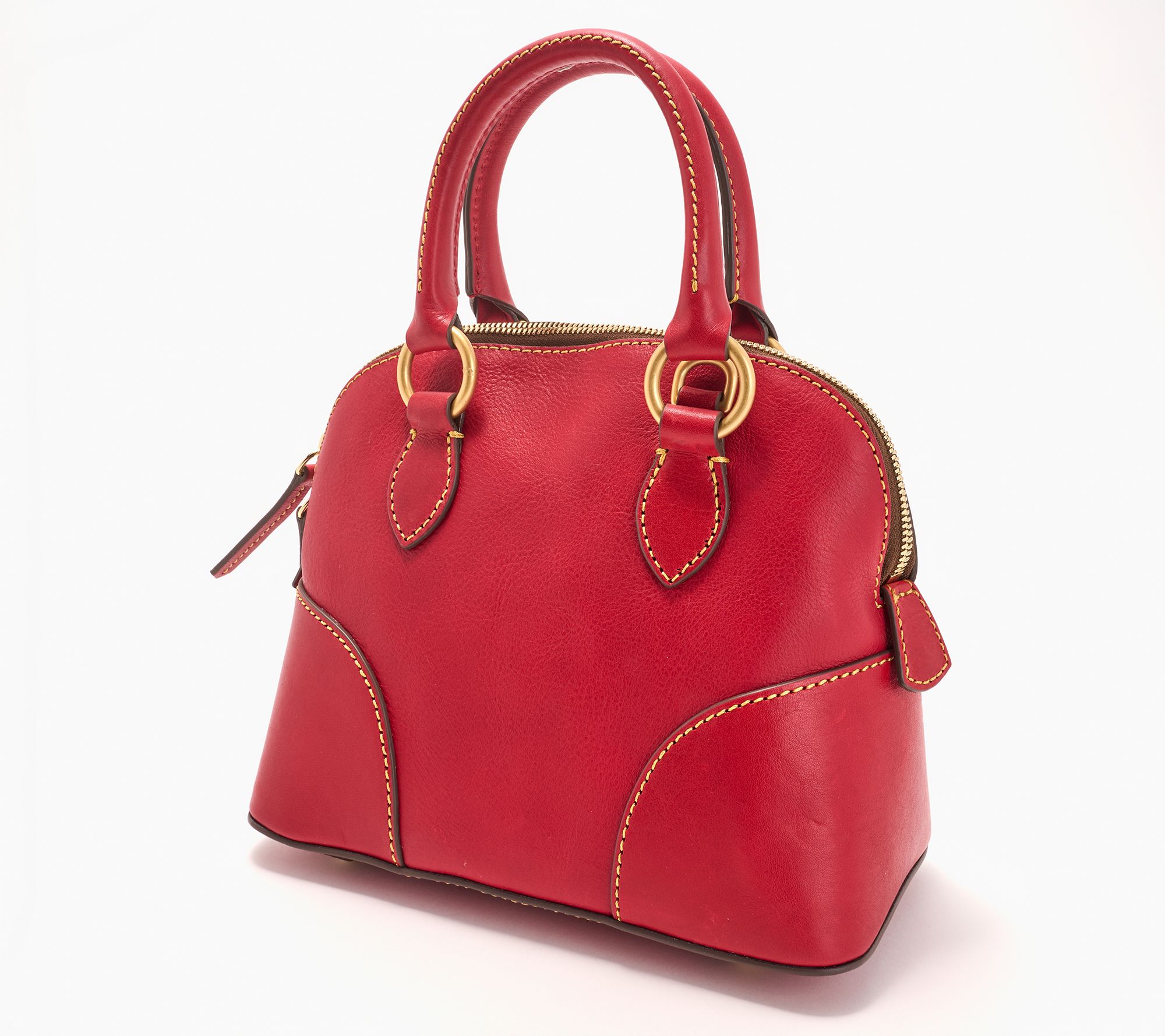 Whether you're heading to coffee dates or running errands, this small Florentine leather satchel brings elegant practicality to your routine. With a zippered top and multiple interior pockets for your essentials, carrying is effortless thanks to dual top handles and an adjustable, detachable shoulder strap. Its compact profile fits comfortably at your side all day. From Dooney & Bourke.