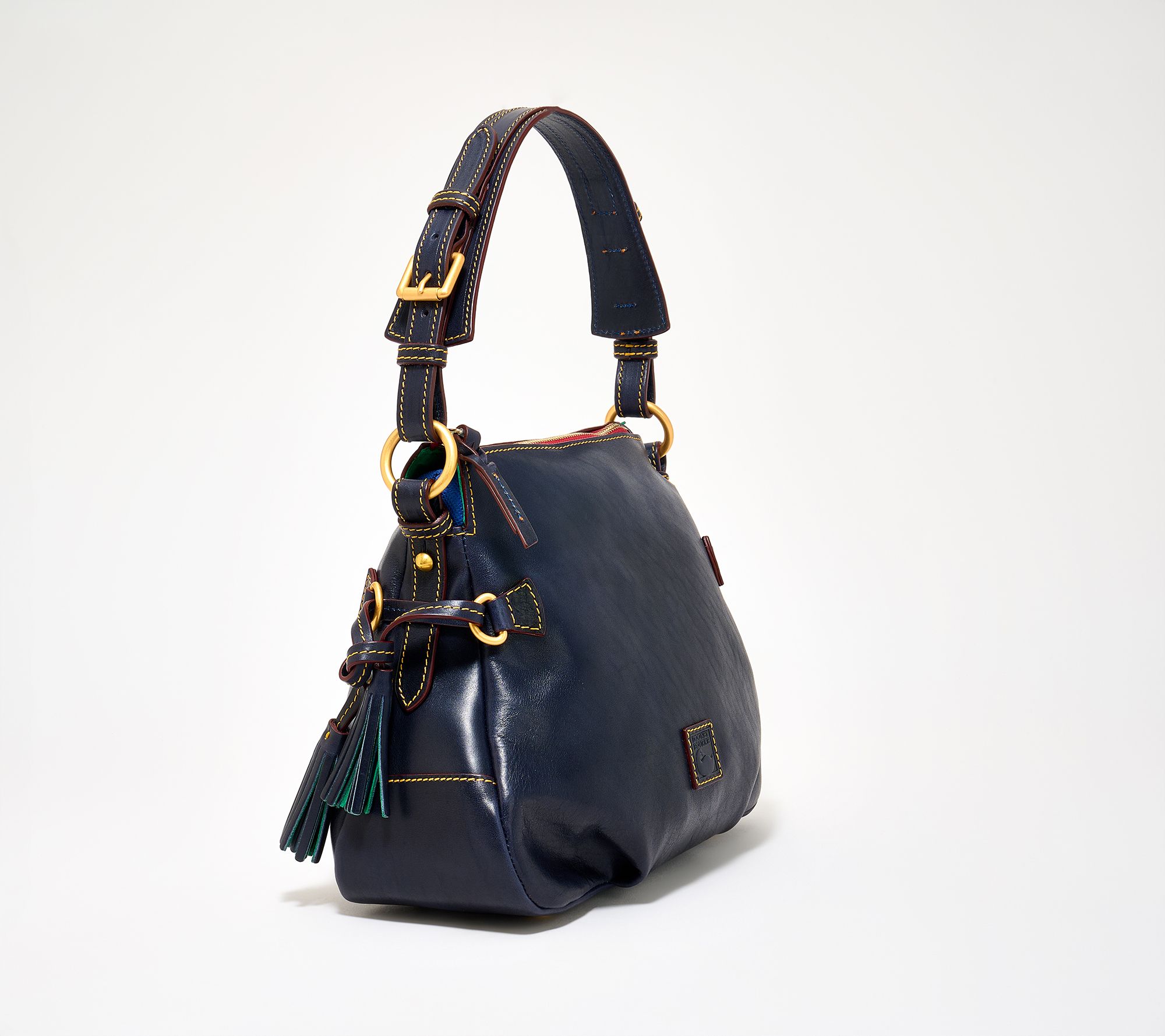 Sleek Florentine leather and gently structured shape make this shoulder bag ideal for daily routines or special afternoons out. The adjustable shoulder strap sits comfortably on your arm, while interior zip pockets, slip pockets, and a key hook keep your phone, wallet, and essentials organized on busy mornings or spontaneous evenings. From Dooney & Bourke.
