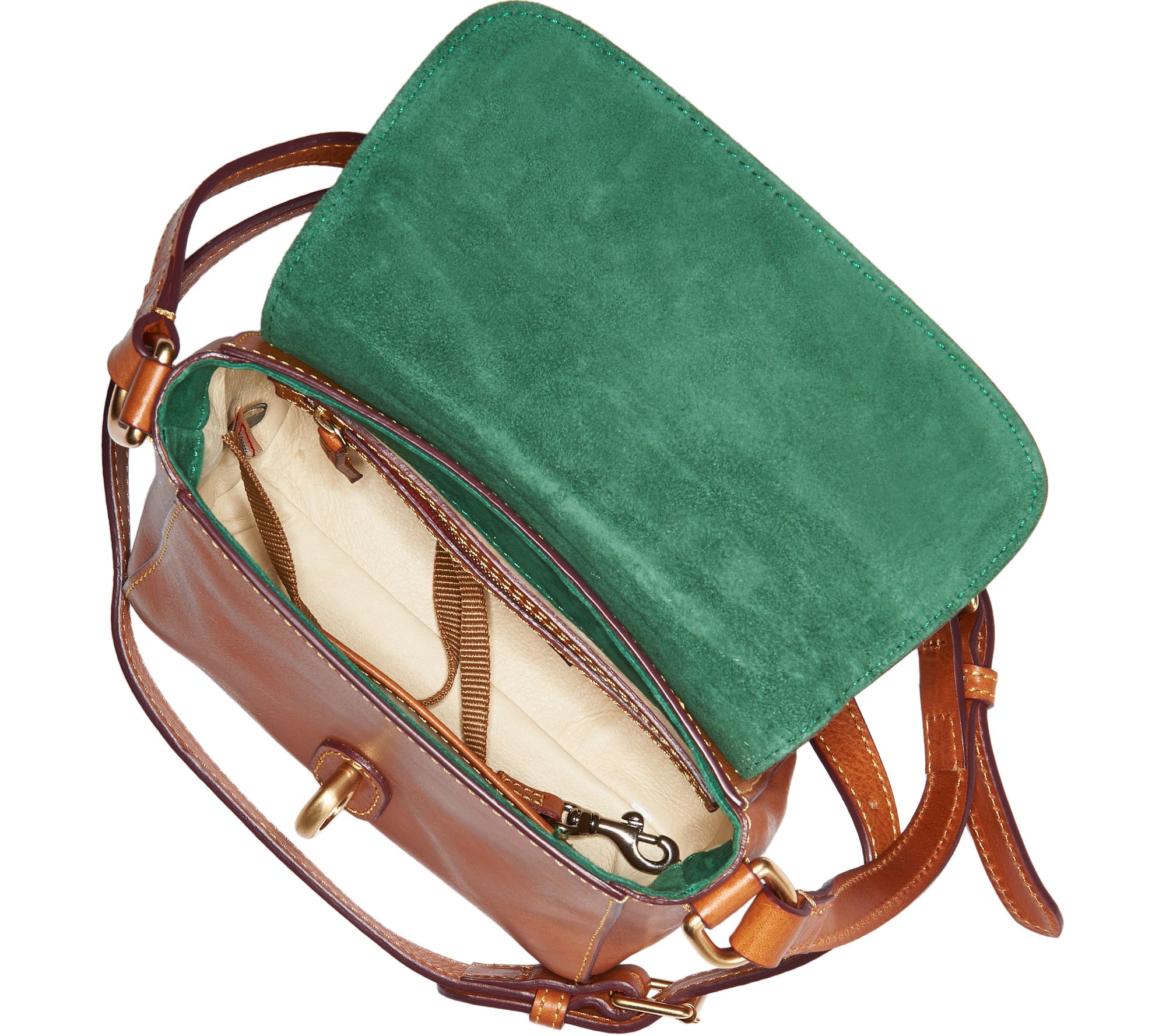 This mini messenger bag still packs in plenty of signature Dooney style, like a lush Florentine leather body and a logo lock closure. From Dooney & Bourke.
