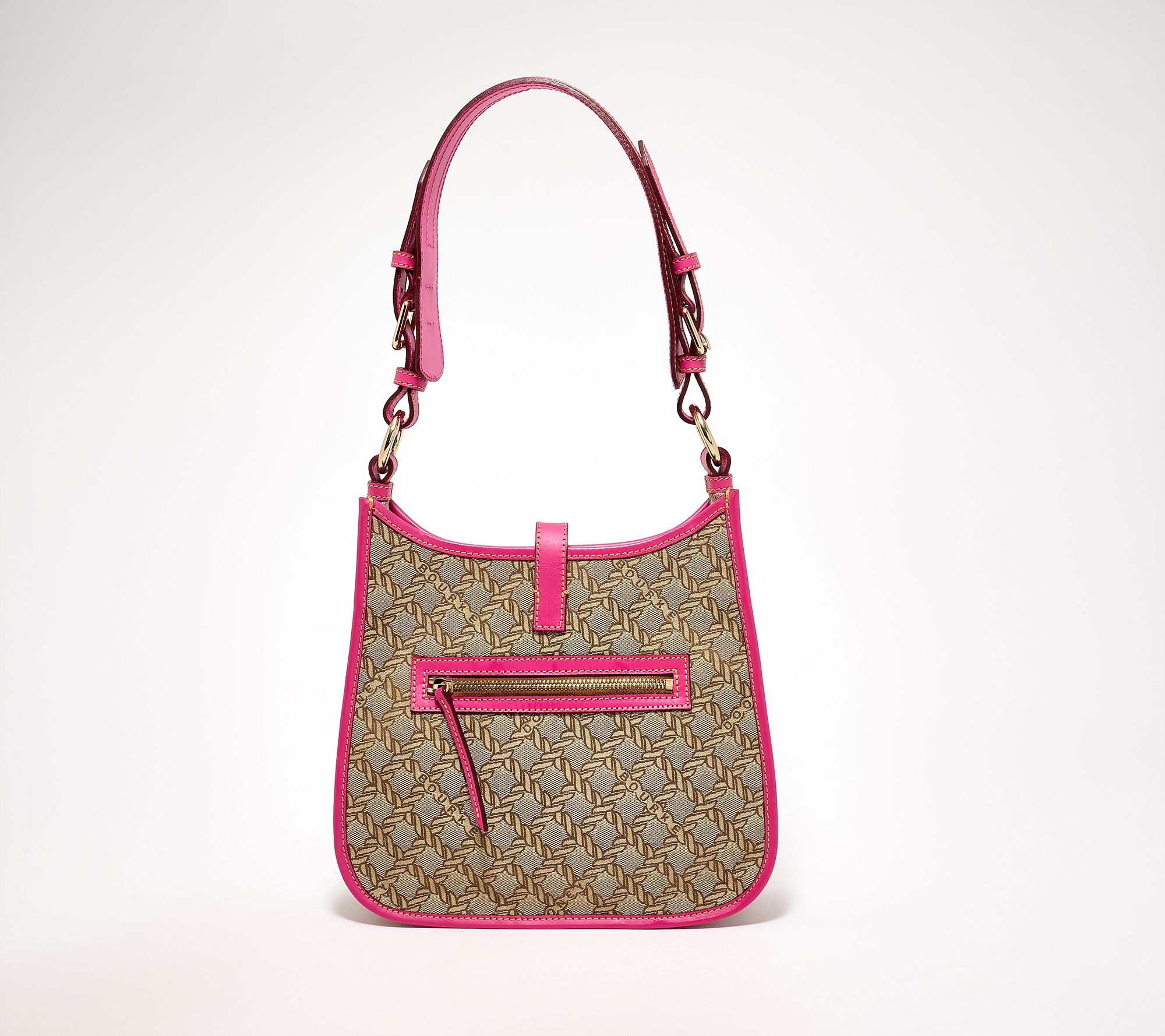 Adjustable shoulder strap with tongue tab buckle closure, zip pocket