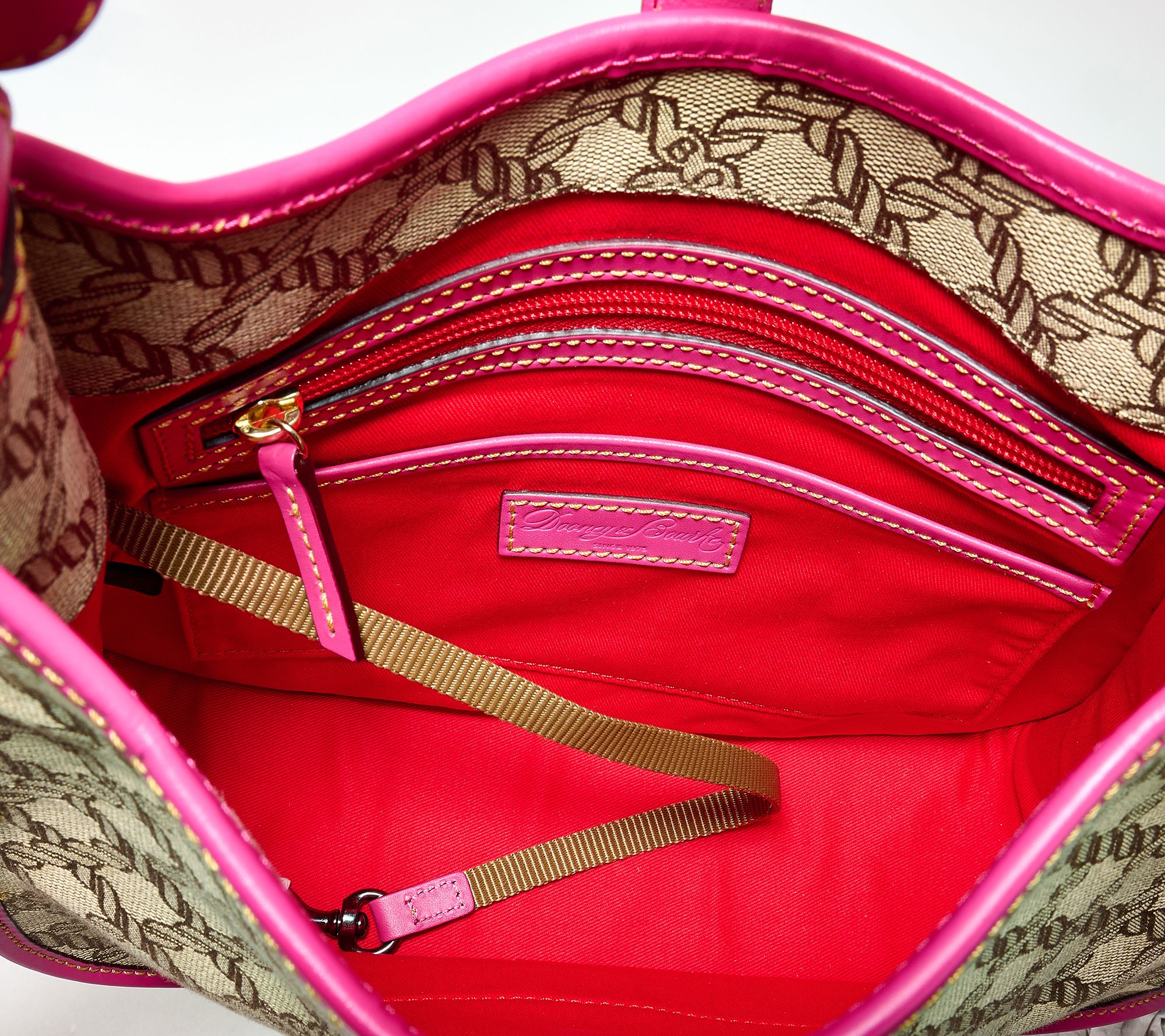 Lined interior, zip pocket, two pockets, key hook