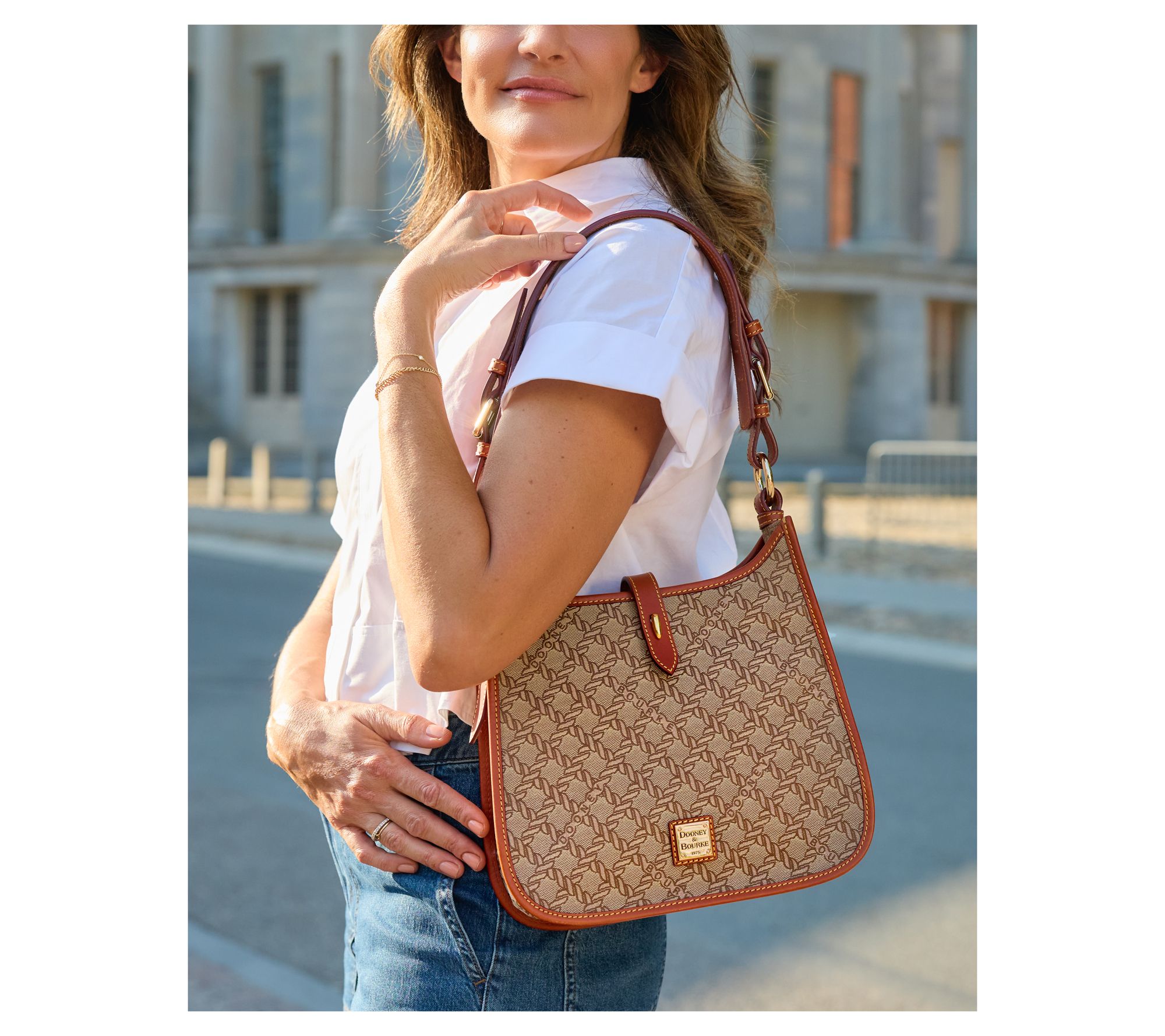 Whether you're commuting to work or heading out to lunch, this messenger shoulder bag is ready to keep your day organized with refined style. The adjustable strap lets you wear it your way, while thoughtfully placed interior and exterior pockets help keep keys, wallet, and other must-haves handy. From Dooney & Bourke.