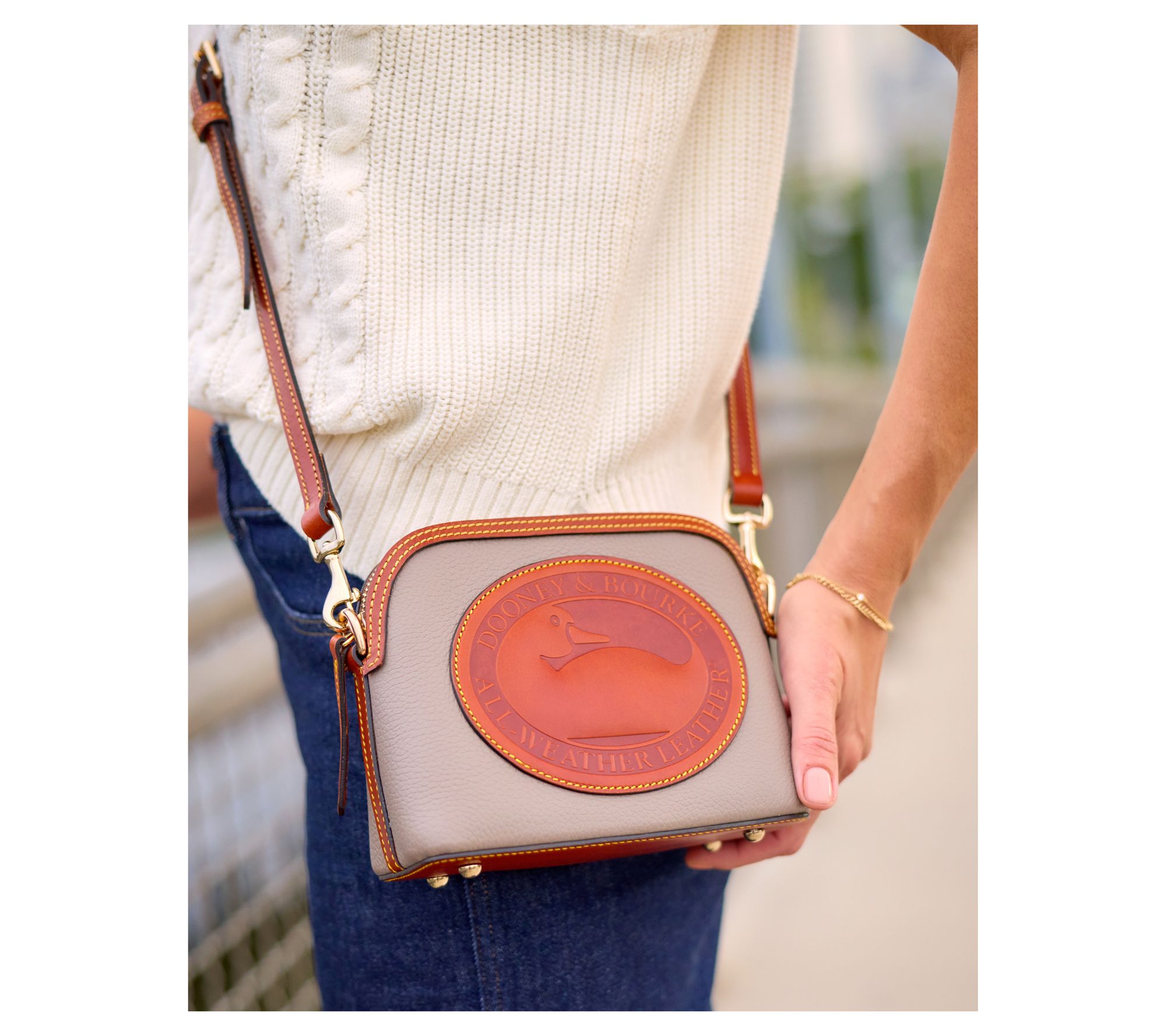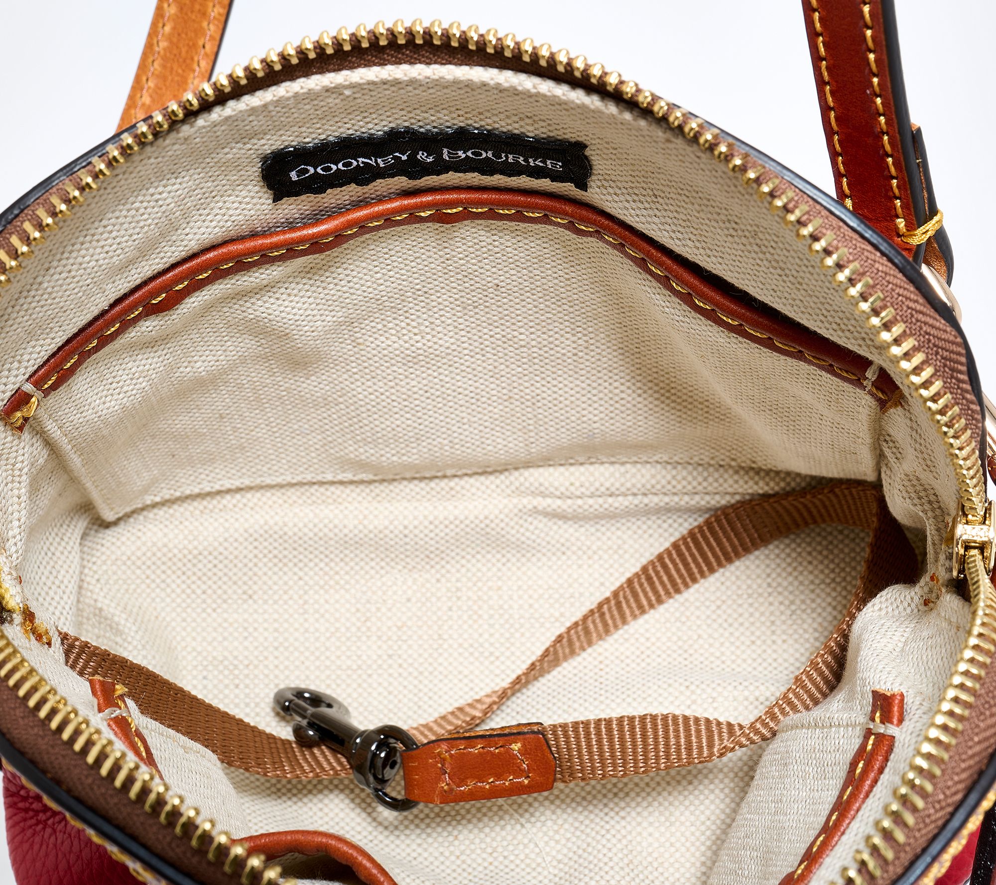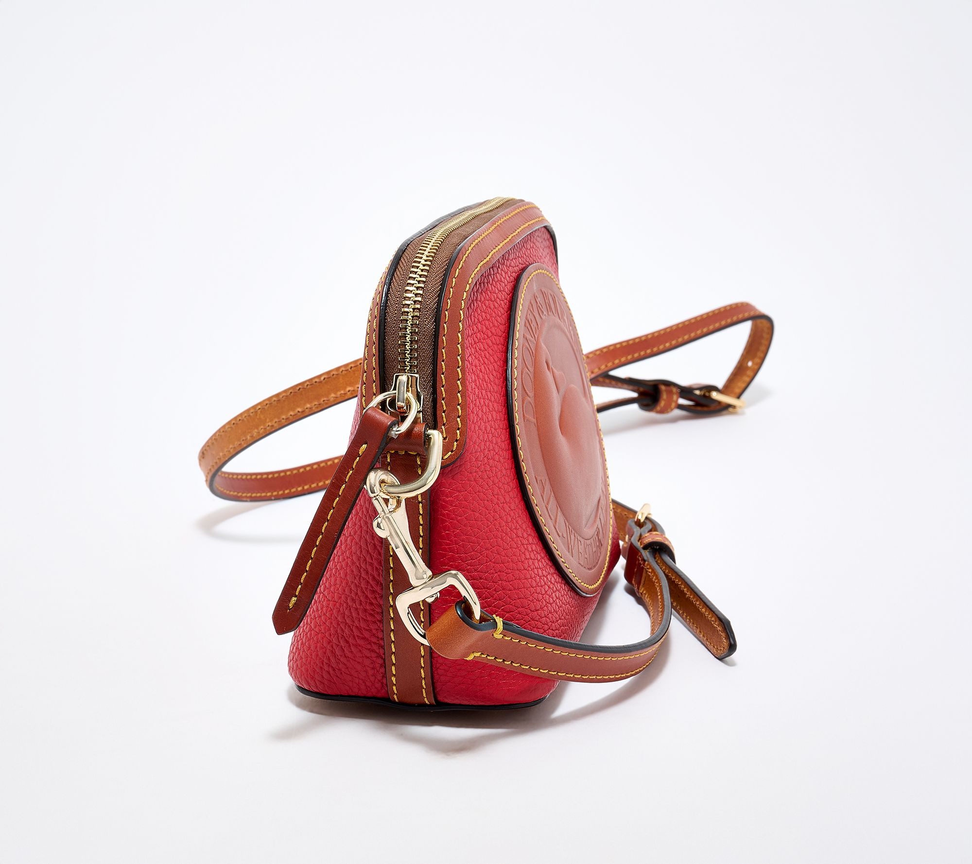 Take your everyday essentials on the go with this Heritage Duck mini domed crossbody, crafted in supple pebble leather for a sophisticated look that feels both classic and versatile. The adjustable and removable strap lets you find your perfect fit, while interior pockets and a key hook help streamline your routine, whether you're out to lunch or heading across town. From Dooney & Bourke.