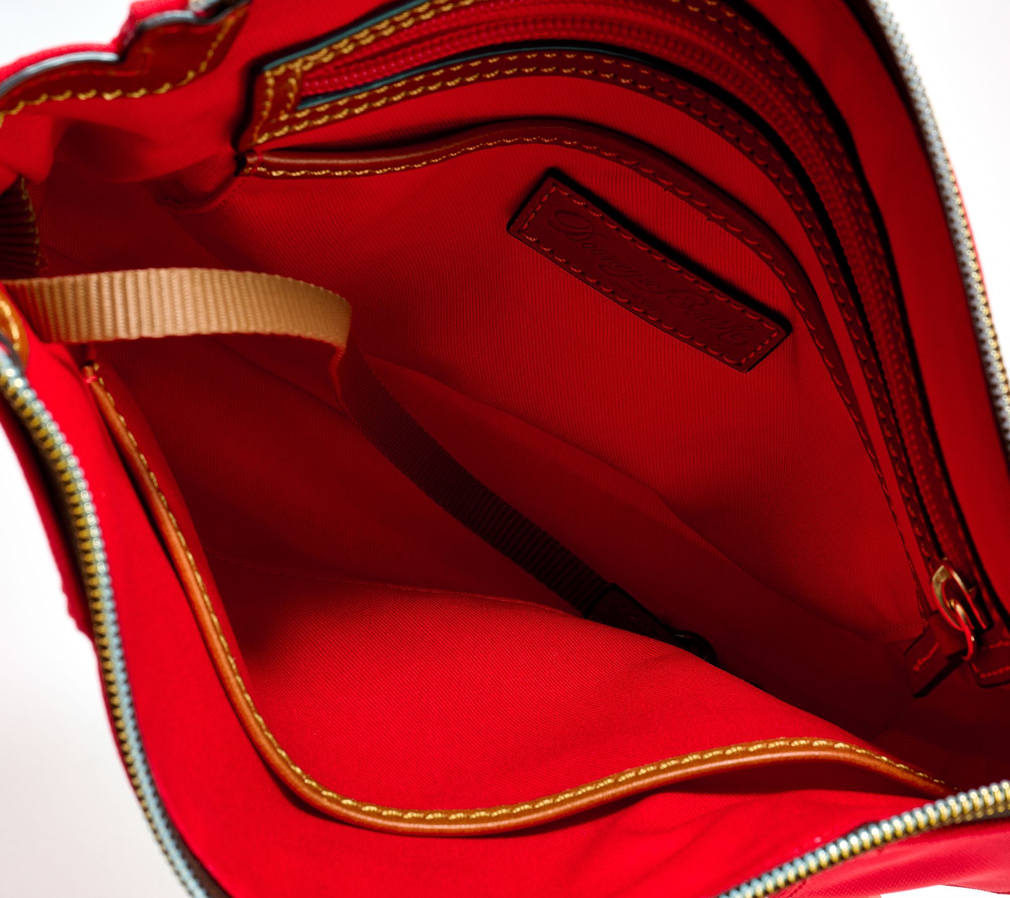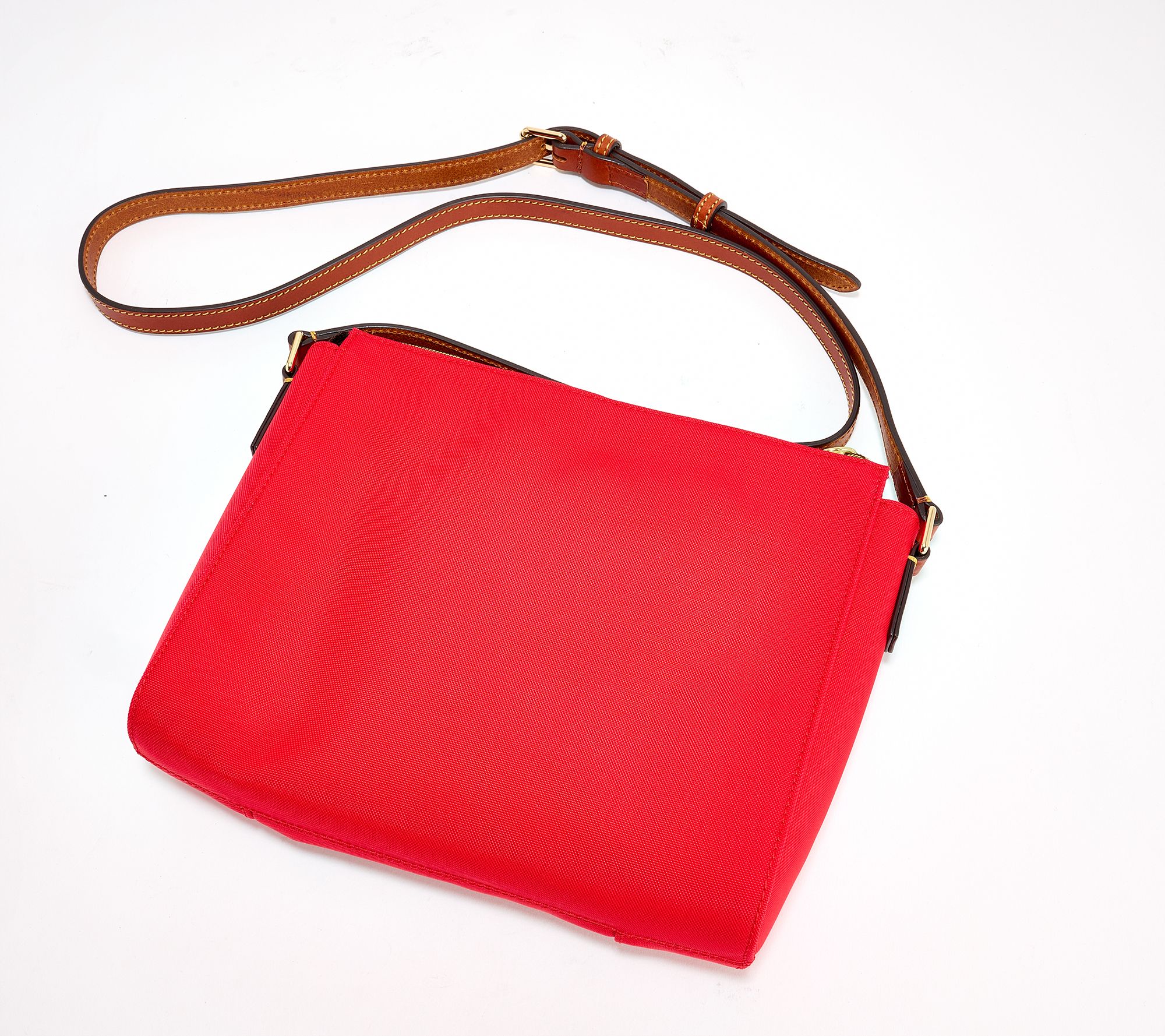 Tackle your daily routine with confidence thanks to this spacious crossbody bag, featuring durable nylon and classic leather trim. The secure zipper closure and thoughtful pockets keep everything from keys to your phone organized and close at hand, making errands or city strolls a breeze. From Dooney & Bourke.
