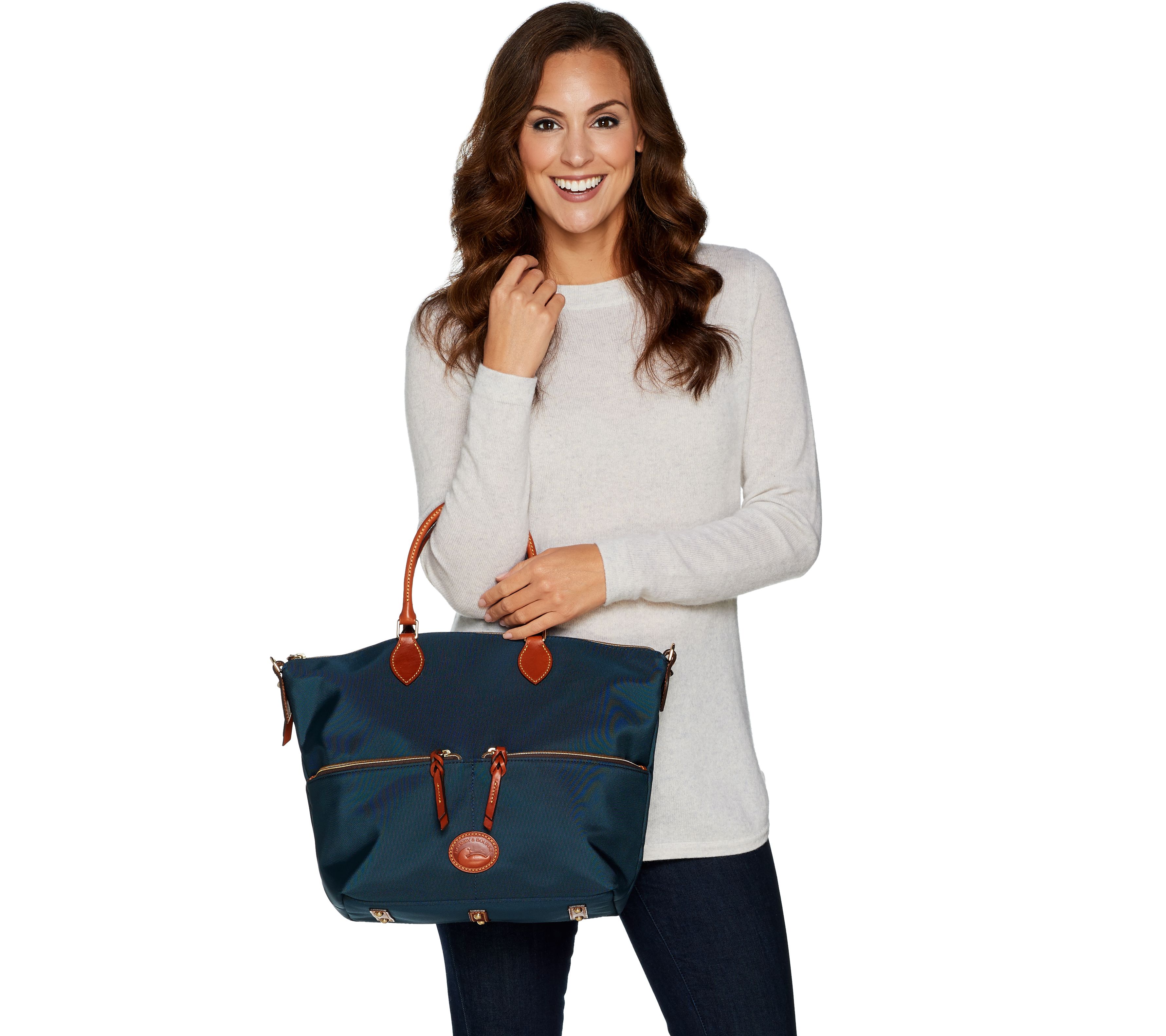 With an easy-breezy nylon construction and lots of pockets to organize your essentials, this tote bag is one you'll never want to leave behind. Dooney & Bourke.