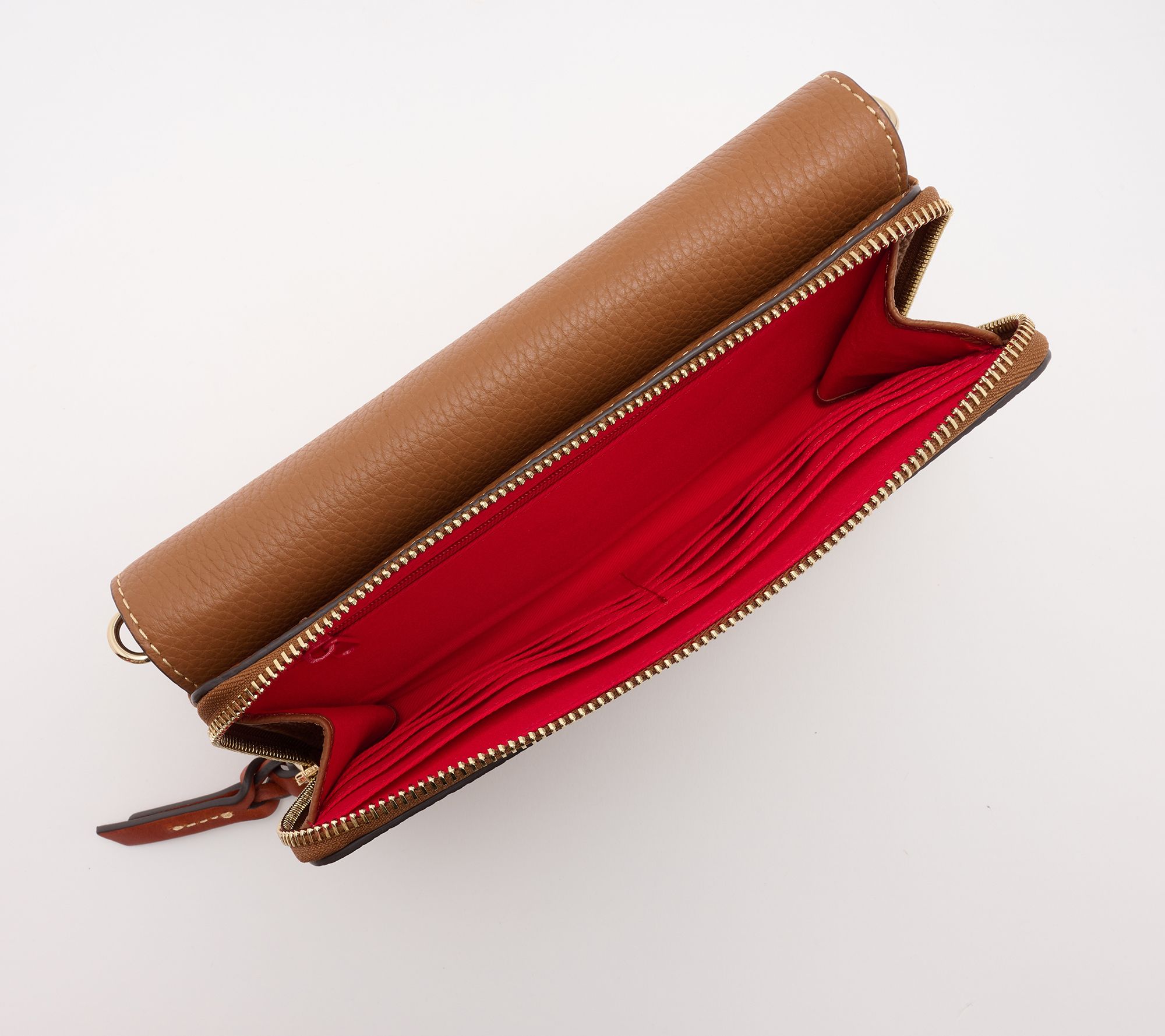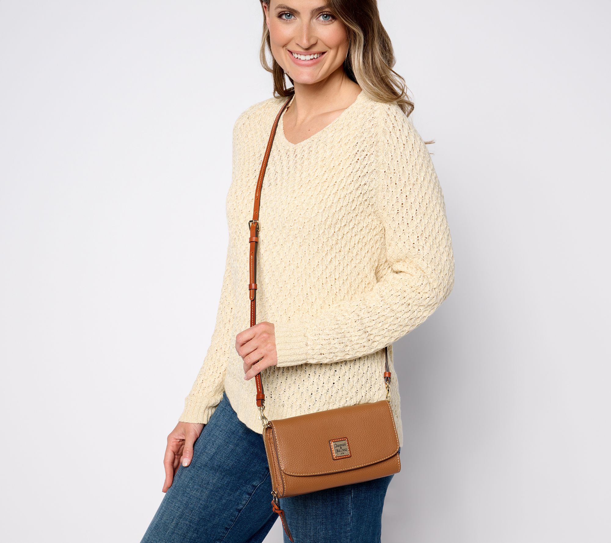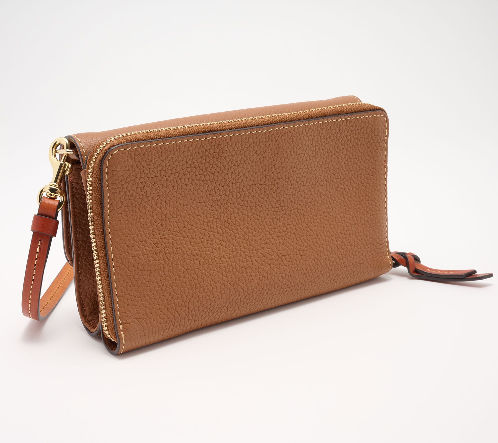 Ditch the bulk -- but not your impeccable style. This compact wallet crossbody in Dooney's classic pebble leather comes in clutch for coffee runs, lunch plans, and sightseeing days. From Dooney & Bourke.