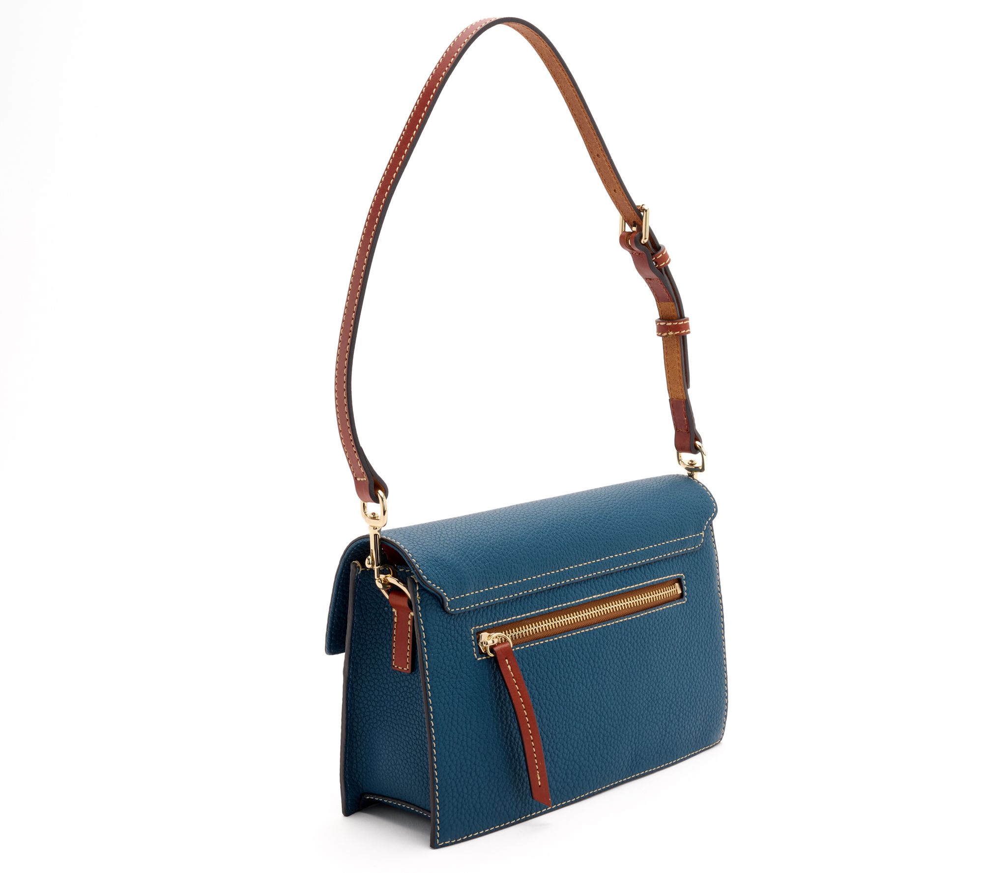 When heading out for errands or meeting friends for lunch, this pebble leather shoulder bag keeps necessities organized and easy to access. An adjustable, detachable shoulder strap lets you wear it your way, while thoughtful pockets and a key hook inside make storing your essentials a breeze. From Dooney & Bourke.