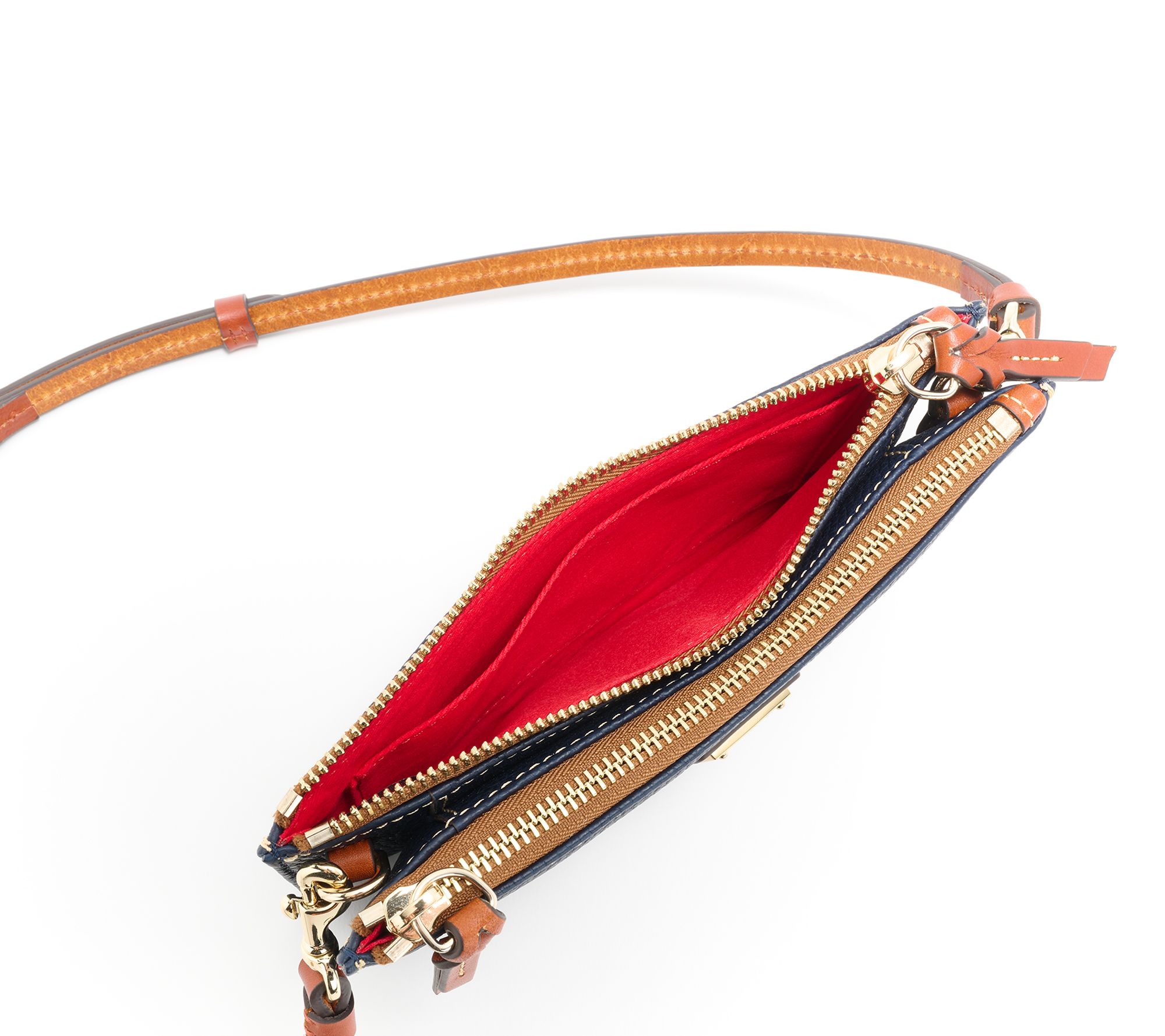 Last-minute invite for a post-workday social at the latest hotspot? Good thing you have Ella by your side. This smart-looking crossbody is as fun as she is functional, with not one, but two zip-top pockets and plenty of slots for phones, cards, and cash. And you won't need to look for safe place to set her down since she's comfortably slung across your body at all times. From Dooney & Bourke.