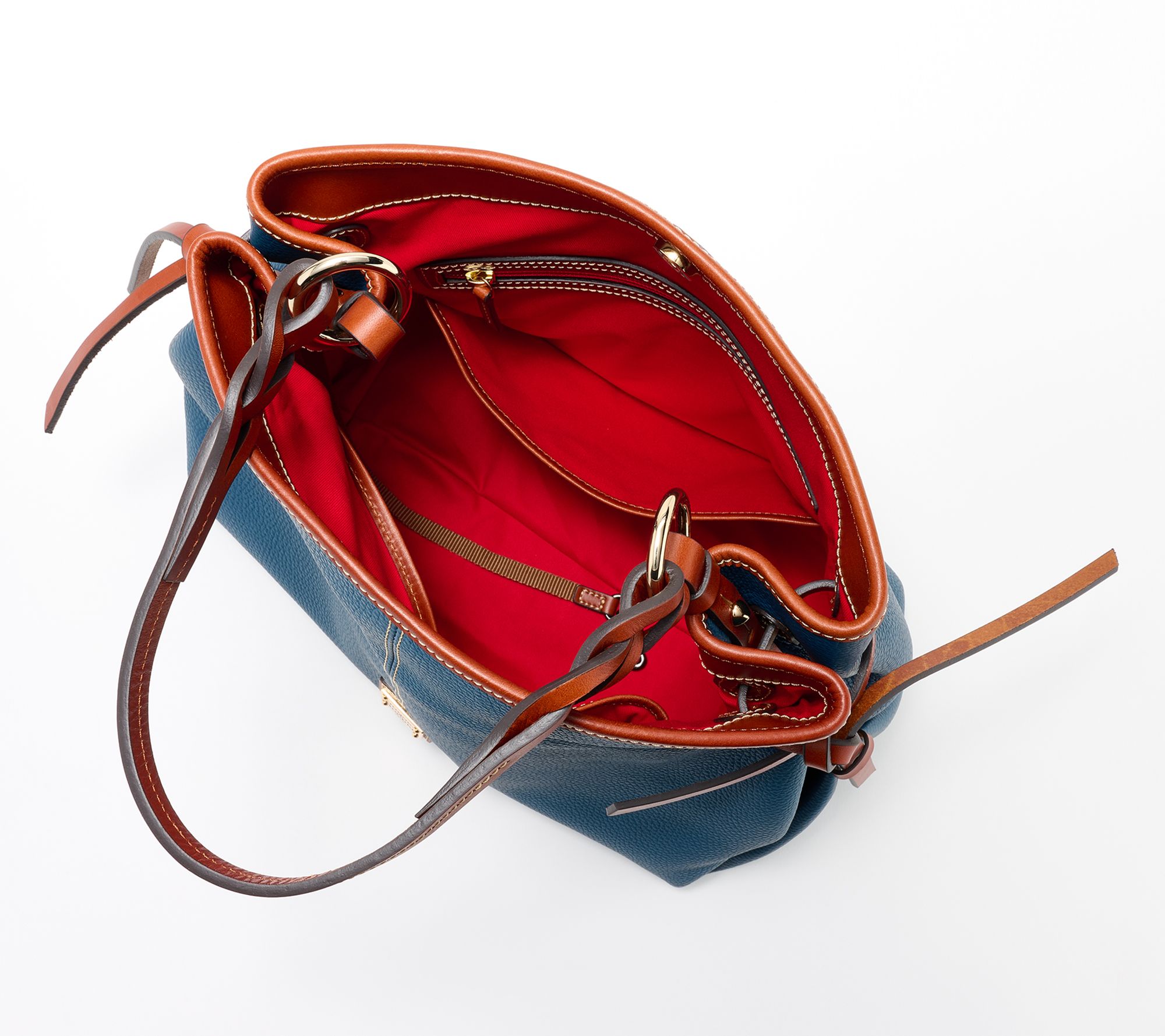 Dooney does it again! Impress onlookers (and bag aficionados!) with this lovely leather hobo, featuring a twisted shoulder strap, adjustable side buckles, and a spacious interior lined with zip and slip pockets. From Dooney & Bourke.