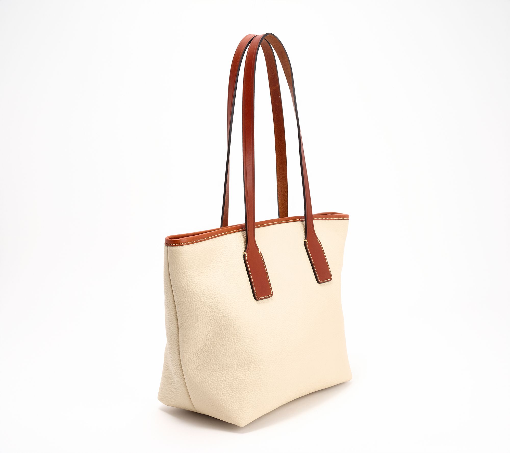 Whether you're heading out for brunch or tackling a busy workday, this small leather tote follows your every move with its fashionable form and fabulous function. The pebble leather design and tasseled zip closure add texture and flair to your routine, while the multiple pockets provide plenty of storage for essentials. Stay stylish with its iconic design by your side. From Dooney & Bourke.