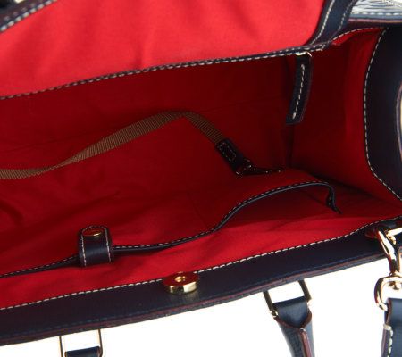 Great design never goes out of style, and is the reason pieces like this keep coming back. The classic shape of this satchel works effortlessly with any trend, and the designer details like the embossed leather keep the look fresh and fashionable. From Dooney & Bourke.
