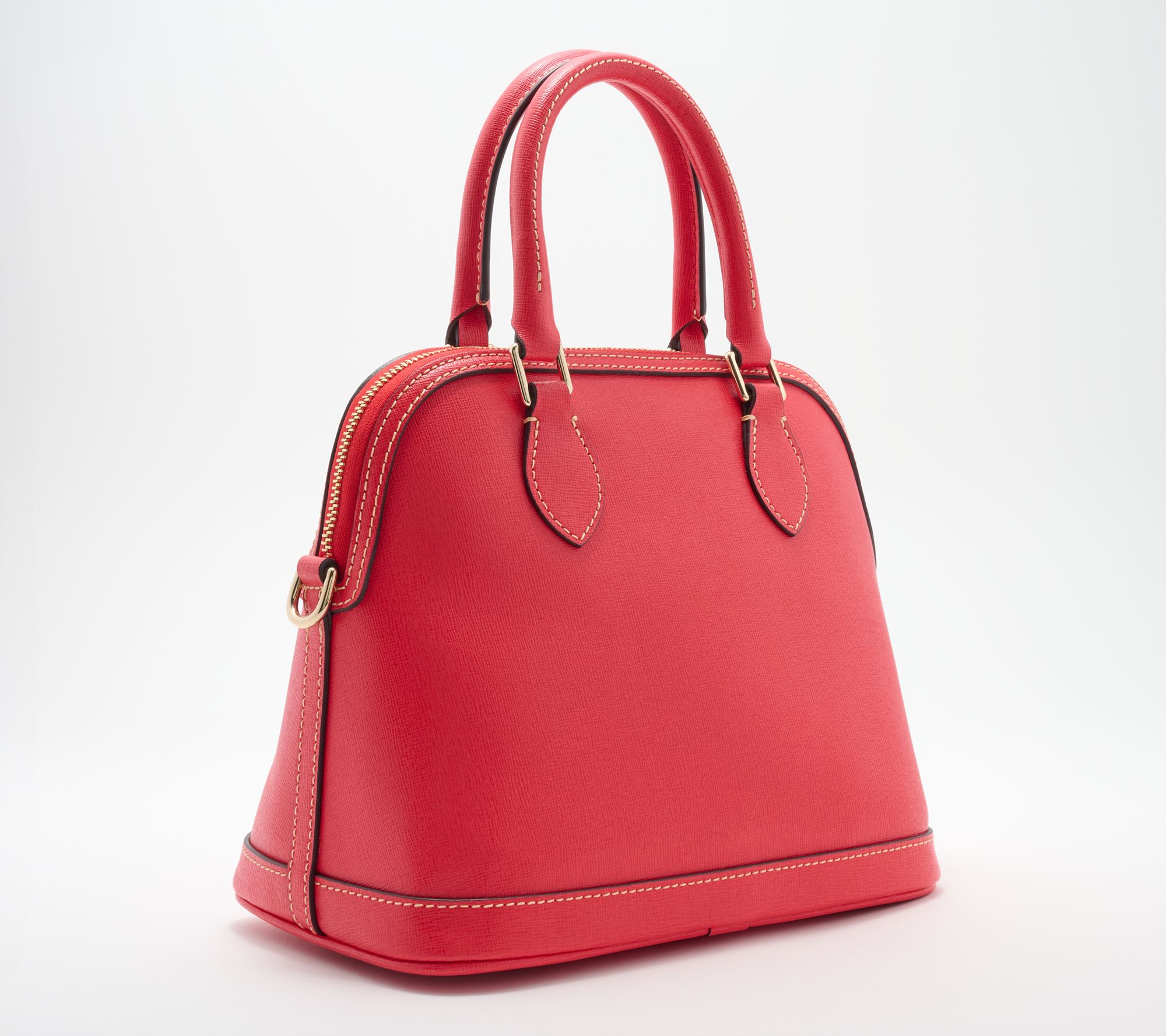 Heading from morning meetings straight into evening plans, this satchel keeps you organized without missing a beat. Attractive Saffiano leather adds polished texture, while its thoughtful interior pockets mean there's a perfect place for your phone, keys, and quick-grab essentials. It's made to move easily through whatever your agenda has in store, one seamless stop at a time. From Dooney & Bourke.