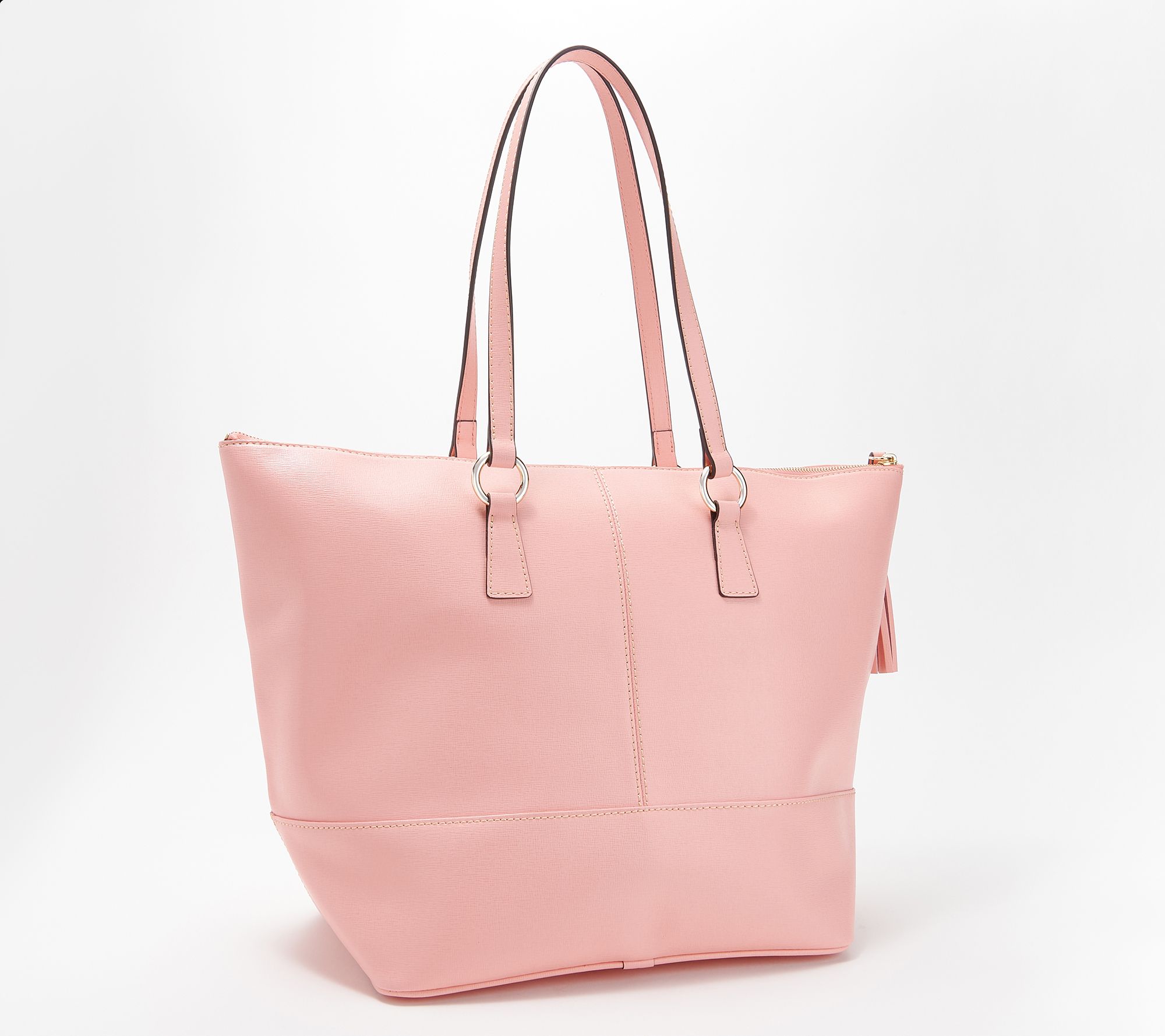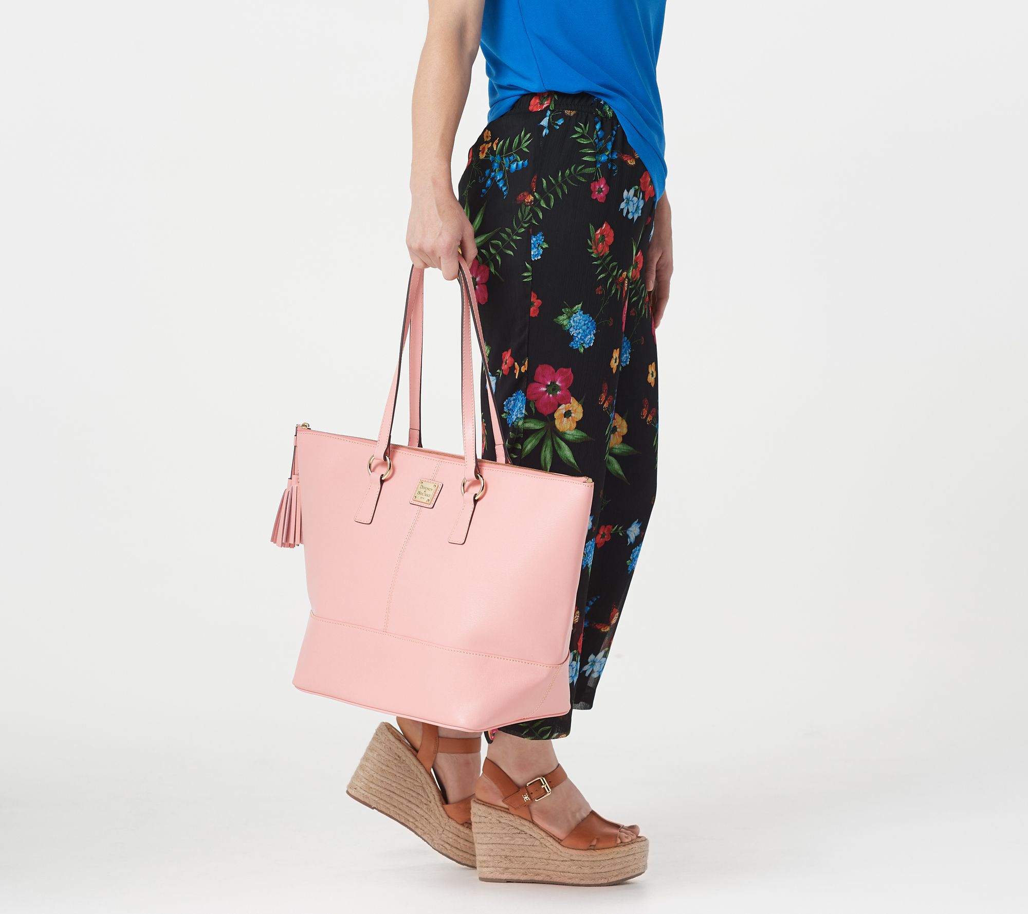 Update your accessories with a luscious Saffiano leather tote. This one has a timeless design and tassels for a touch of flair. From Dooney & Bourke.