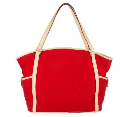 Get it here first! This tote from Dooney & Bourke is done in a brand-new signature print and comes with a cosmetic case and key fob for sophisticated color coordination.