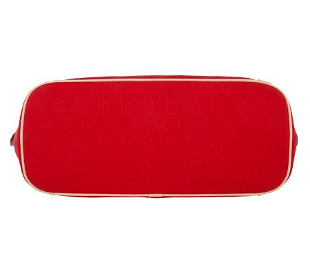 Classic design. High-quality craftsmanship is the hallmark of a Dooney & Bourke handbag. The fabric body--done with a subtle Dooney & Bourke print--and leather trim gives this bag everyday style--perfect for year-round wear.