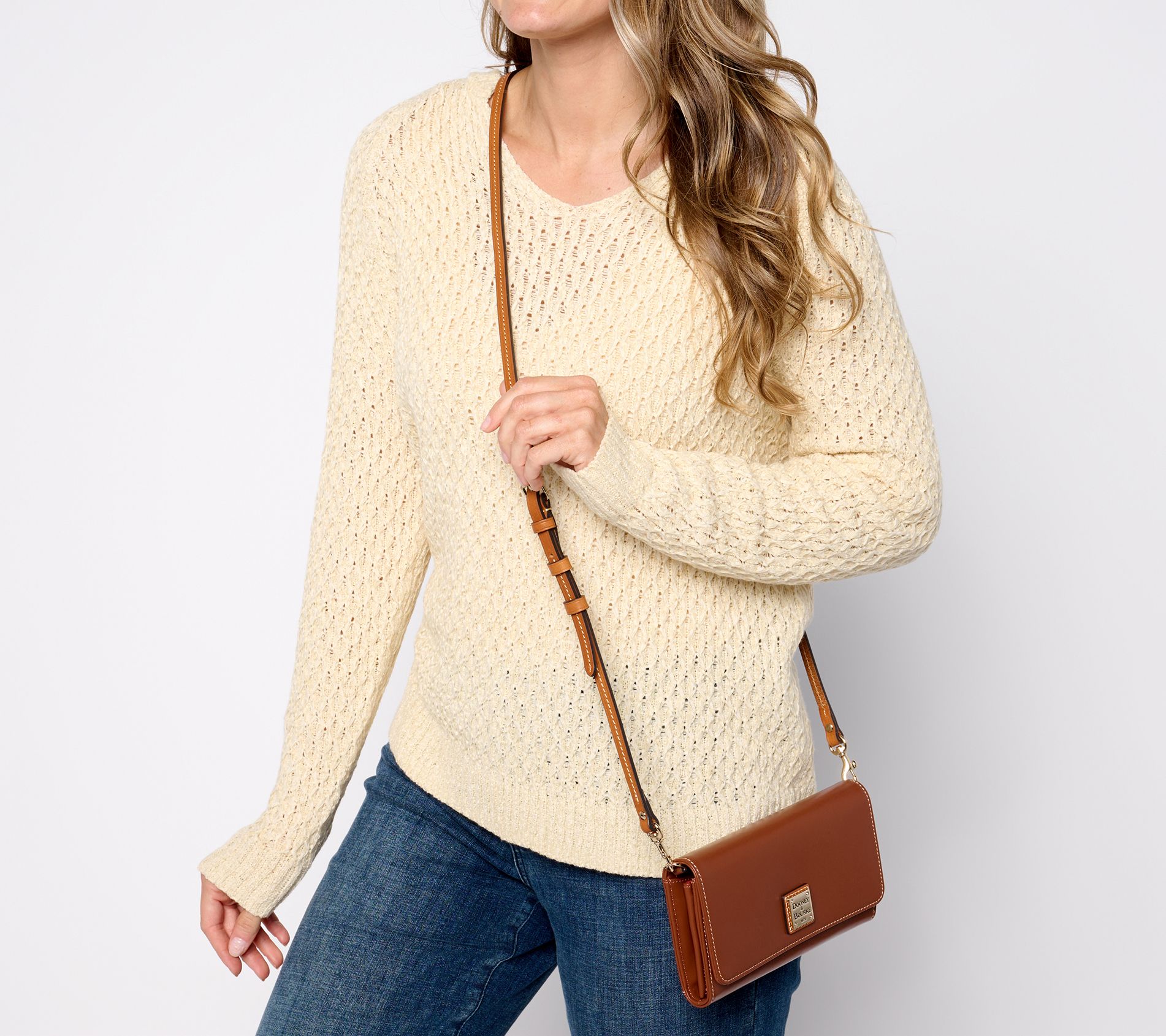 Errands around town or weekend plans call for something as flexible as your schedule, and this compact Wexford leather crossbody answers with everyday style and smart organization. Keep your essentials stored neatly in separate pockets, with plenty of room for cards and a secure zip compartment for change or receipts. Hands-free ease lets you focus on what matters most. From Dooney & Bourke.