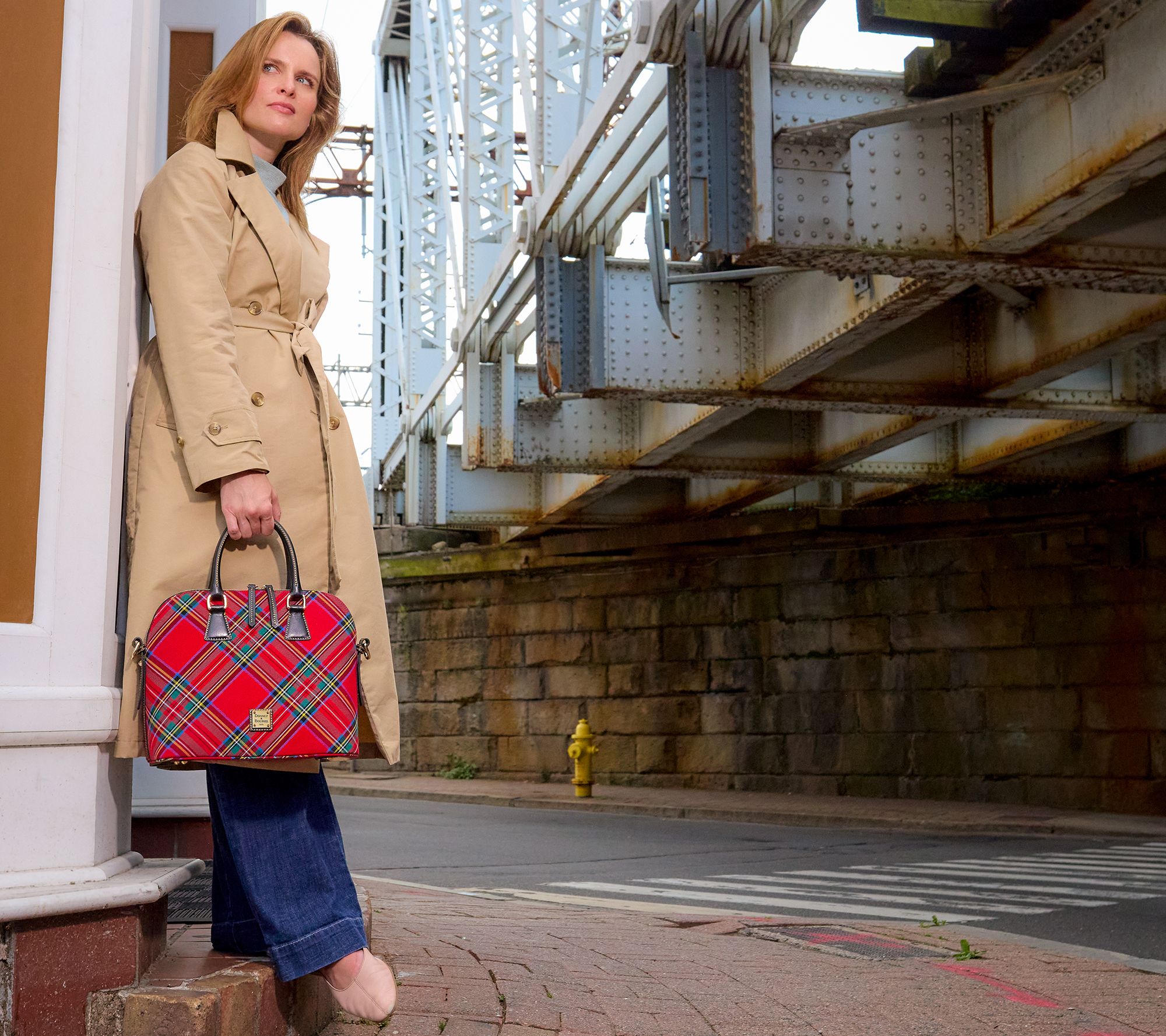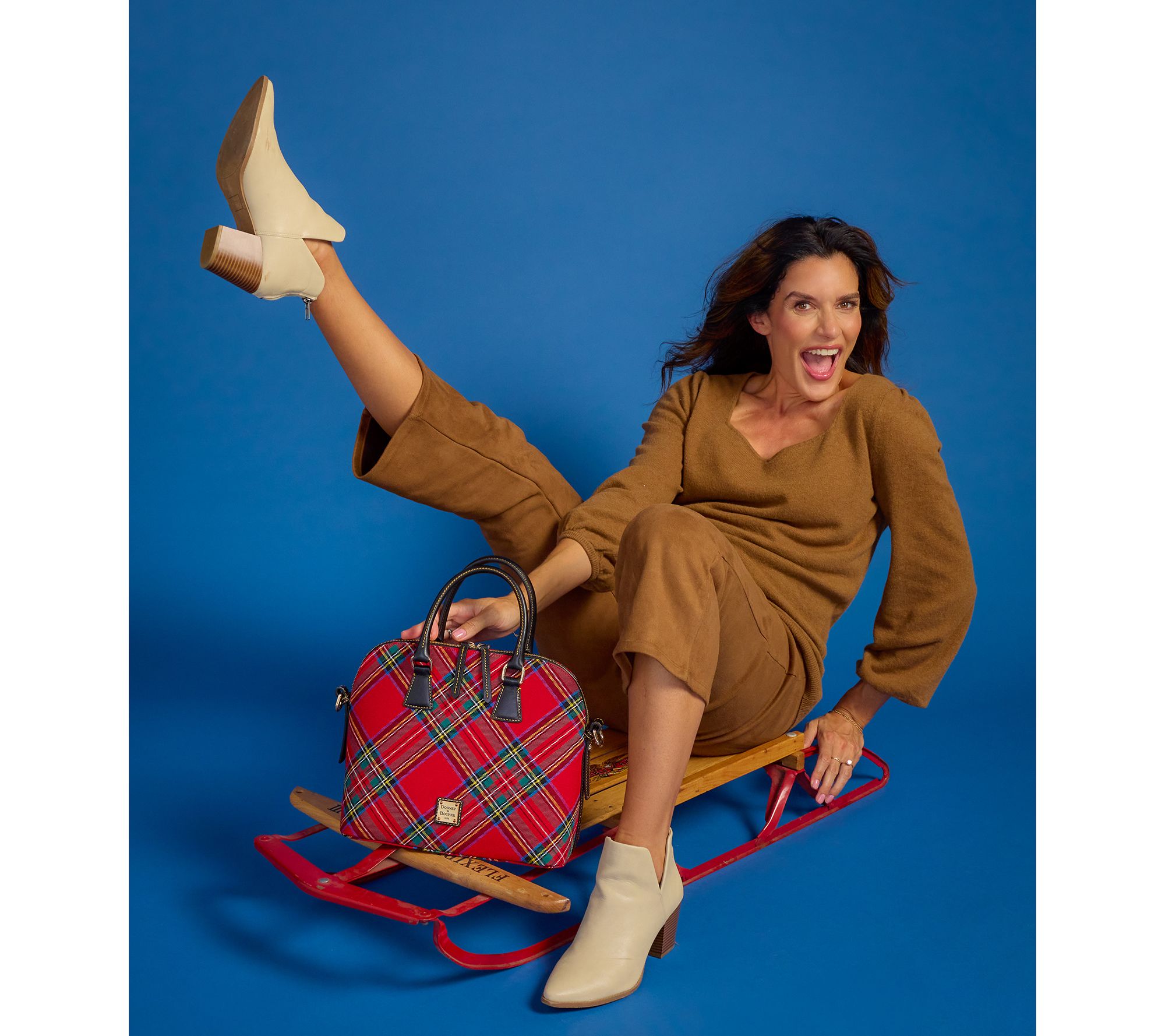 A pretty plaid bag is never a bad idea. Dooney & Bourke always gets it right and this tartan satchel is no exception. The cotton carryall features a convenient crossbody strap and double handles, with interior slip pockets and a key hook for organization. Sport this style throughout the holiday season and beyond. From Dooney & Bourke.