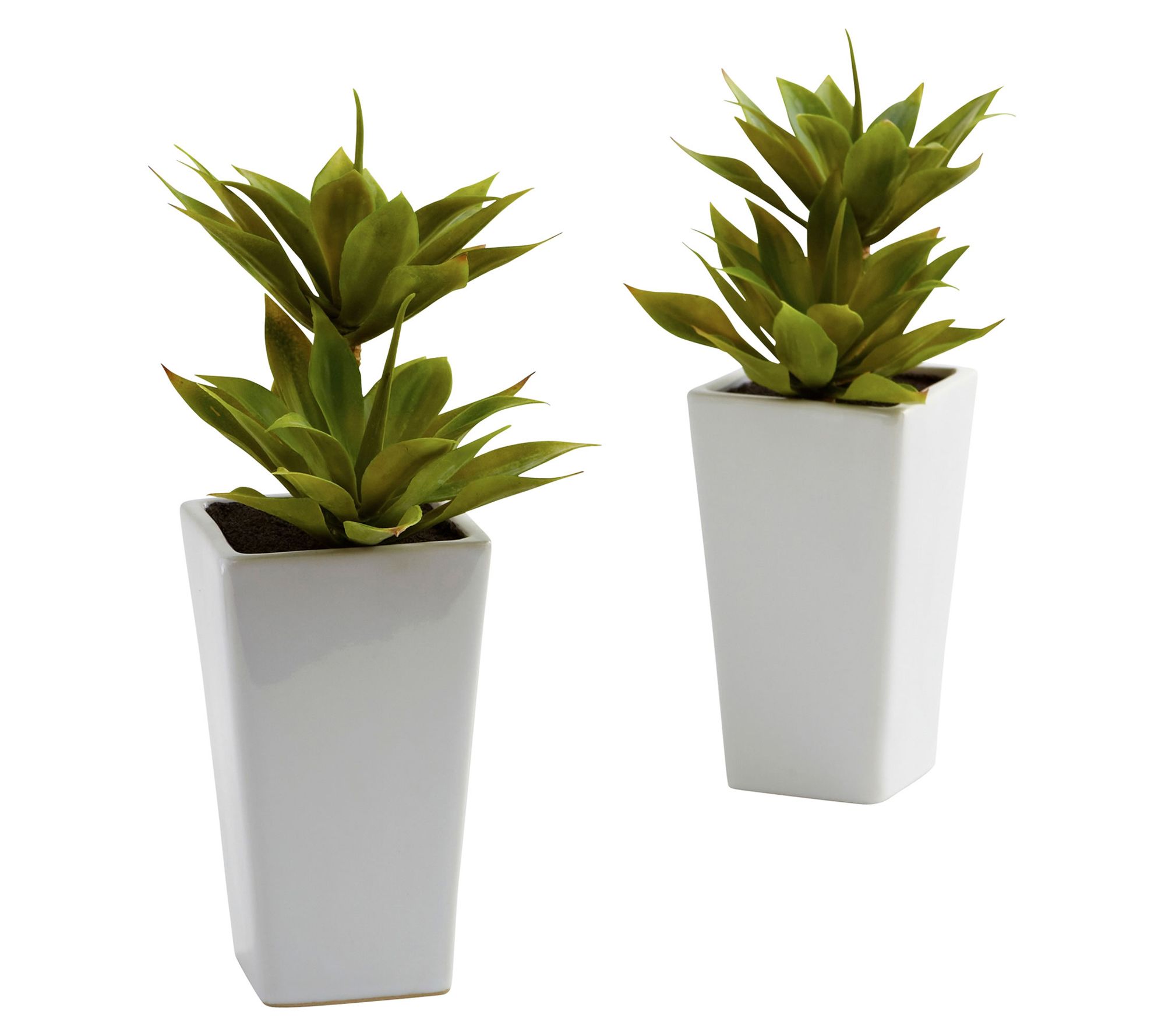 Double Mini Agave with Planter Set of 2 by Nearly Natural