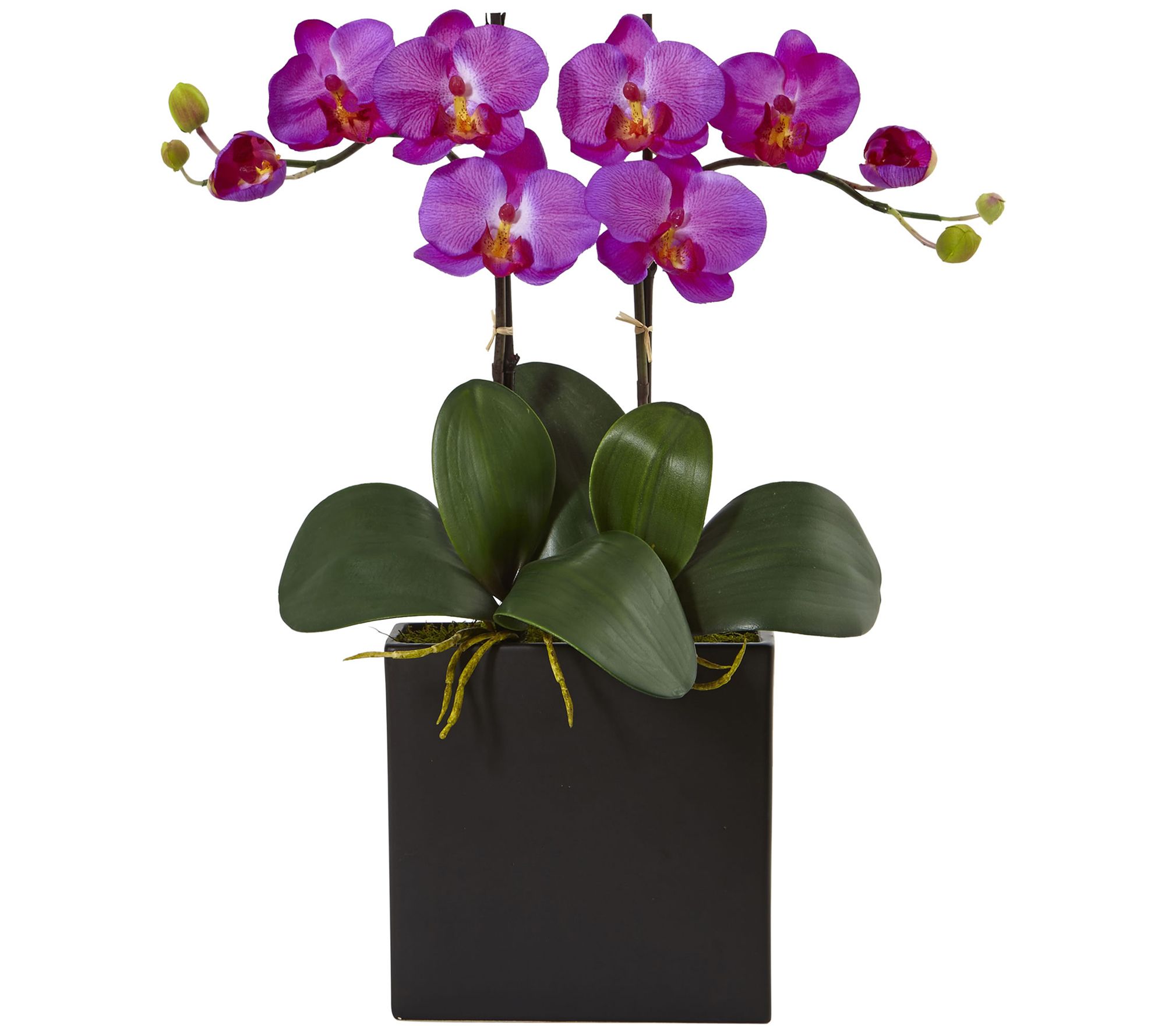 Bring the summertime inside all year round with this brightly colored, lifelike phalaenopsis orchid. From Nearly Natural.