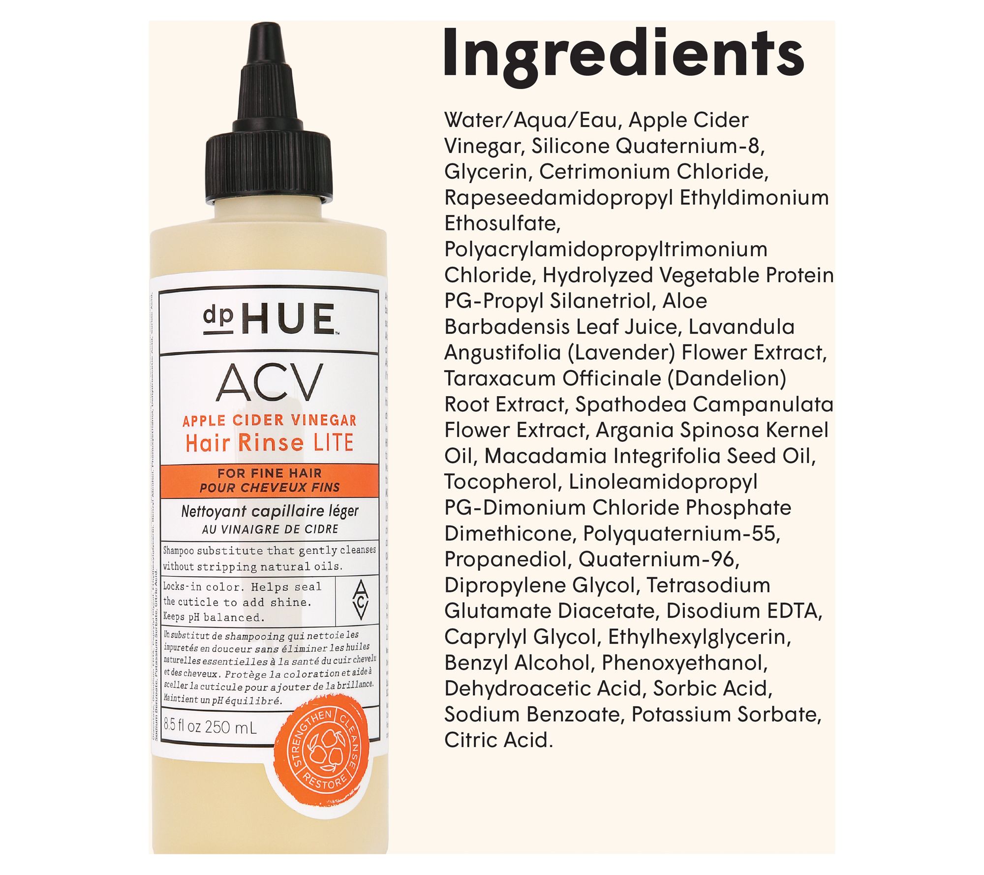 Apple Cider Vinegar Hair Rinse Lite cleanses to help improve the appearance of hair.
