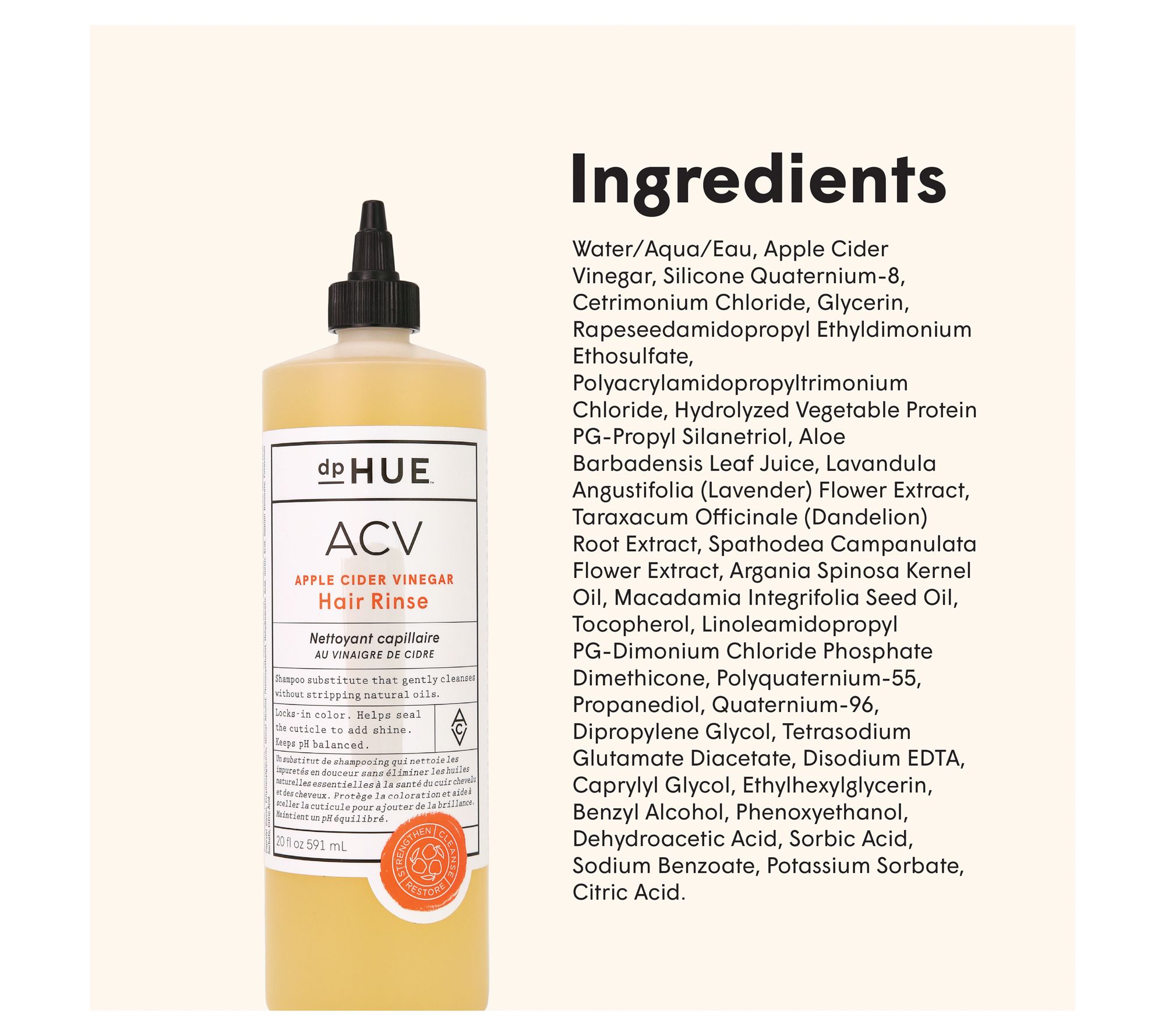 dpHUE Apple Cider Vinegar Hair Rinse Shampoo Alternative 20oz.