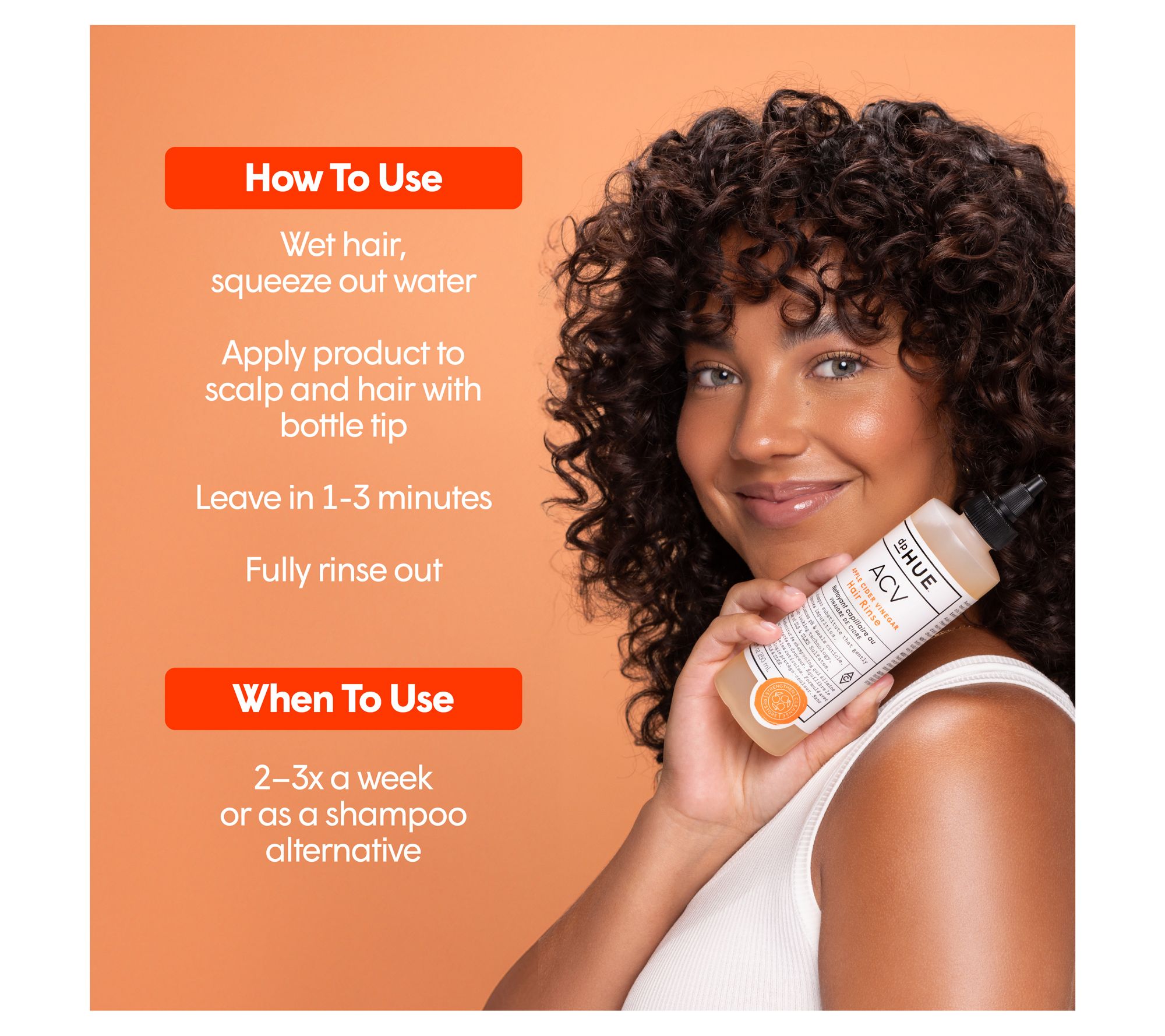 How do I use it: Wet scalp and hair, then squeeze out excess water. Use bottle tip to create small parts in hair, gently squeezing the product onto your scalp. Massage in, working through hair from roots to tips. Leave in one to three minutes. Rinse thoroughly and use as often as needed.