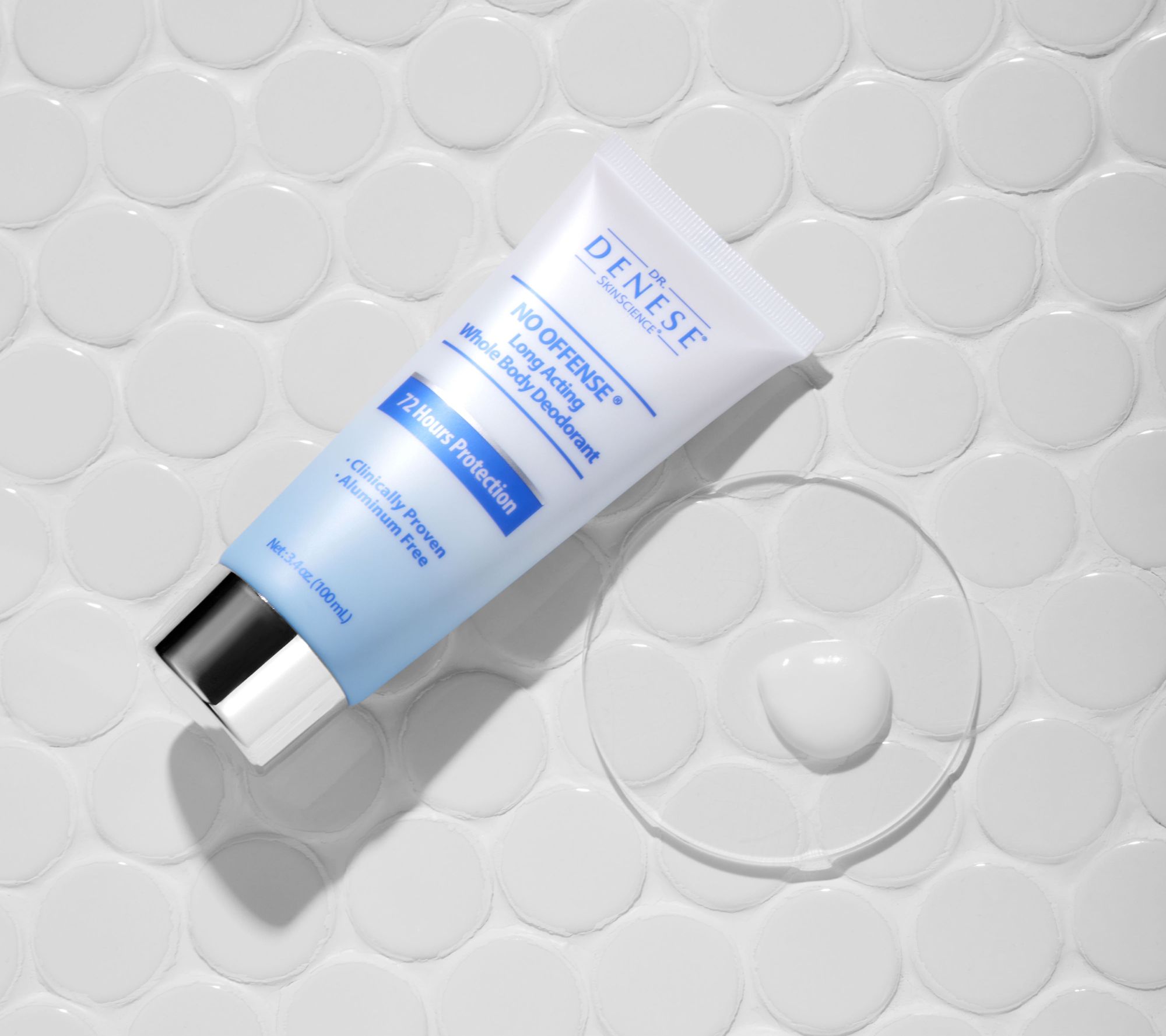 Simple, effective, and easy to use daily, Dr. Denese No Offense Body Deodorant provides a deodorizing effect for the whole body, including pits, privates, feet, or anywhere on the body. It goes beyond the traditional approach of deodorizing by developing a hydrating cream delivery that provides a deodorizing effect to odors anywhere on the body. Formulated with aloe, jasmine, lavender, mandelic acid, and lactic acid (which has been shown to help temporarily brighten the look of skin and help skin appear more radiant and improve the look of skin texture), the deodorant features a fresh citrus scent.