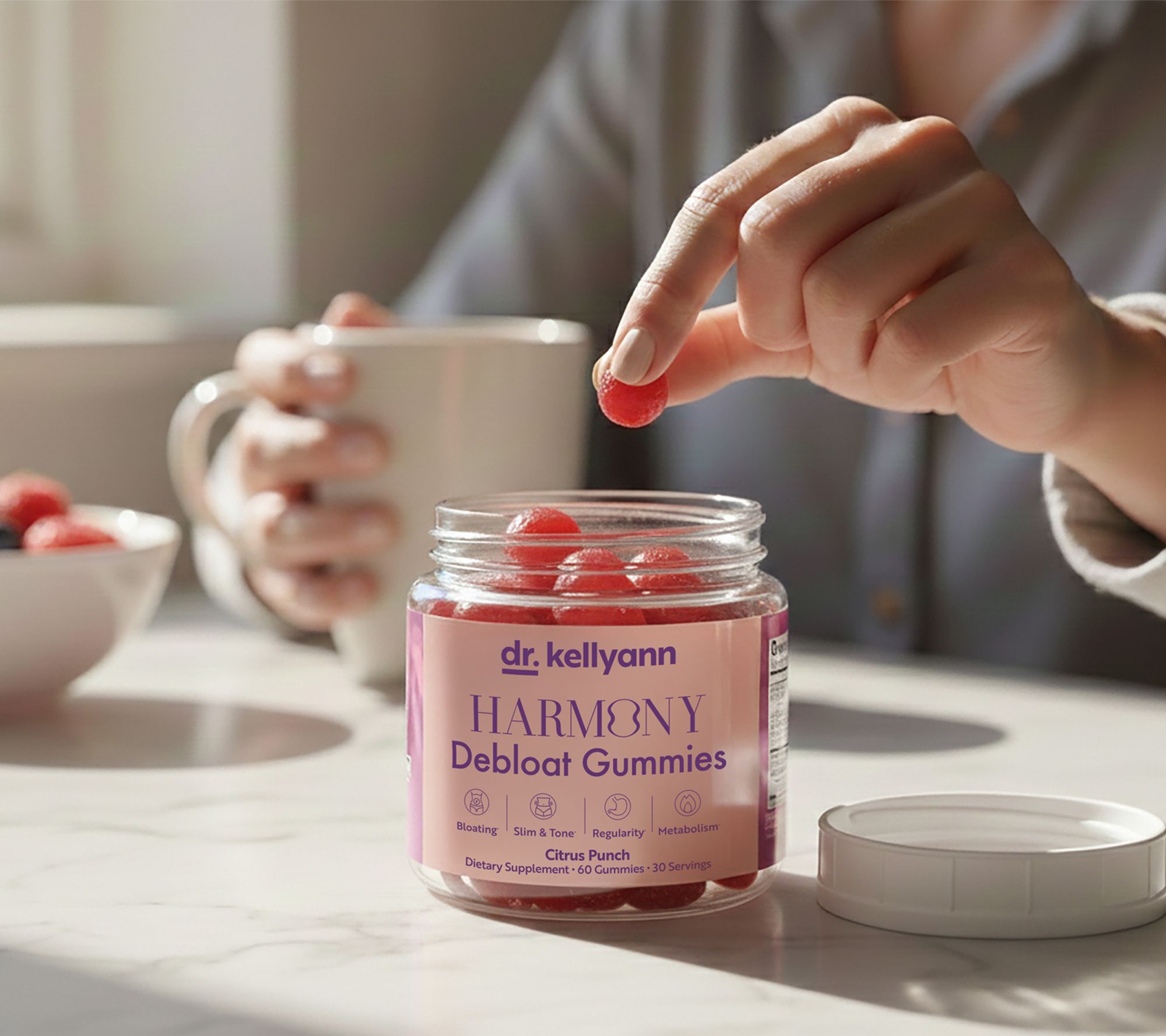 Tackle occasional bloating and digestive discomfort with Dr. Kellyann's Harmony Debloat Gummies, a flavorful solution you can enjoy at home or on the go. These gummies are crafted with three grams of fiber in every serving, helping to address digestive health from within. From Dr. Kellyann.