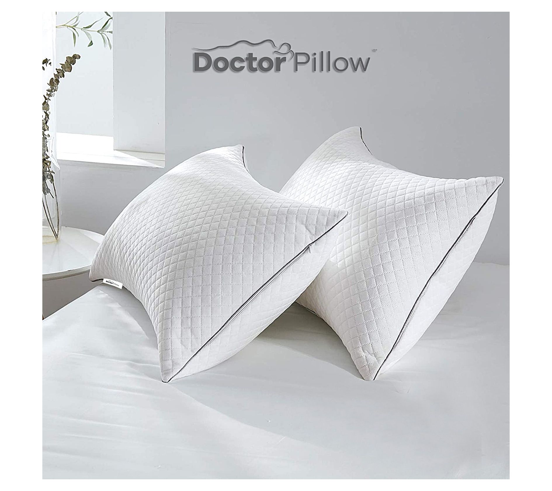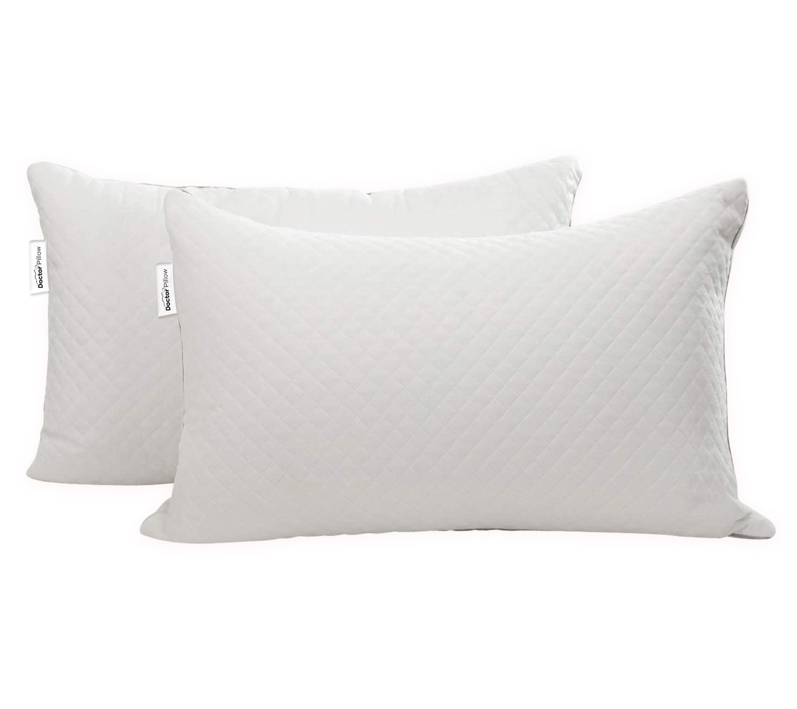 Experience a night of restful sleep with the Dr Pillow Homax Pillows Soft Bed Pillow Collection, designed to cater to your comfort preferences with adjustable filling. Enjoy the luxurious softness and durability provided by the three-layer quilted technology and elegant window pattern design, perfect for enhancing any bedroom decor. From Dr Pillow.