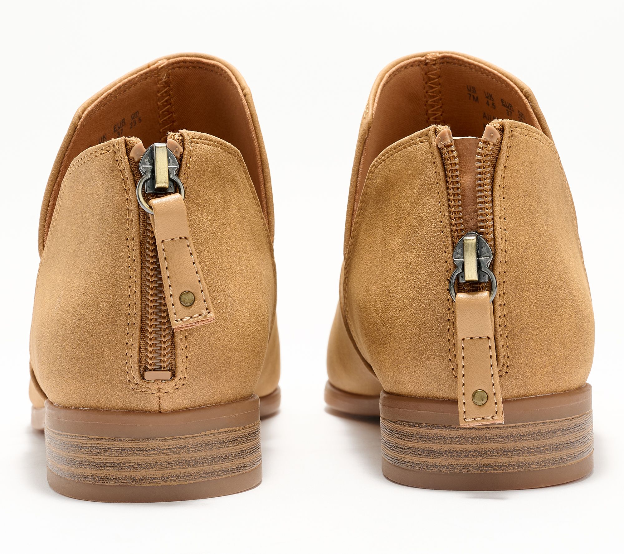 • Back zipper, round toe, stitch detailing, anti-microbial topcloth