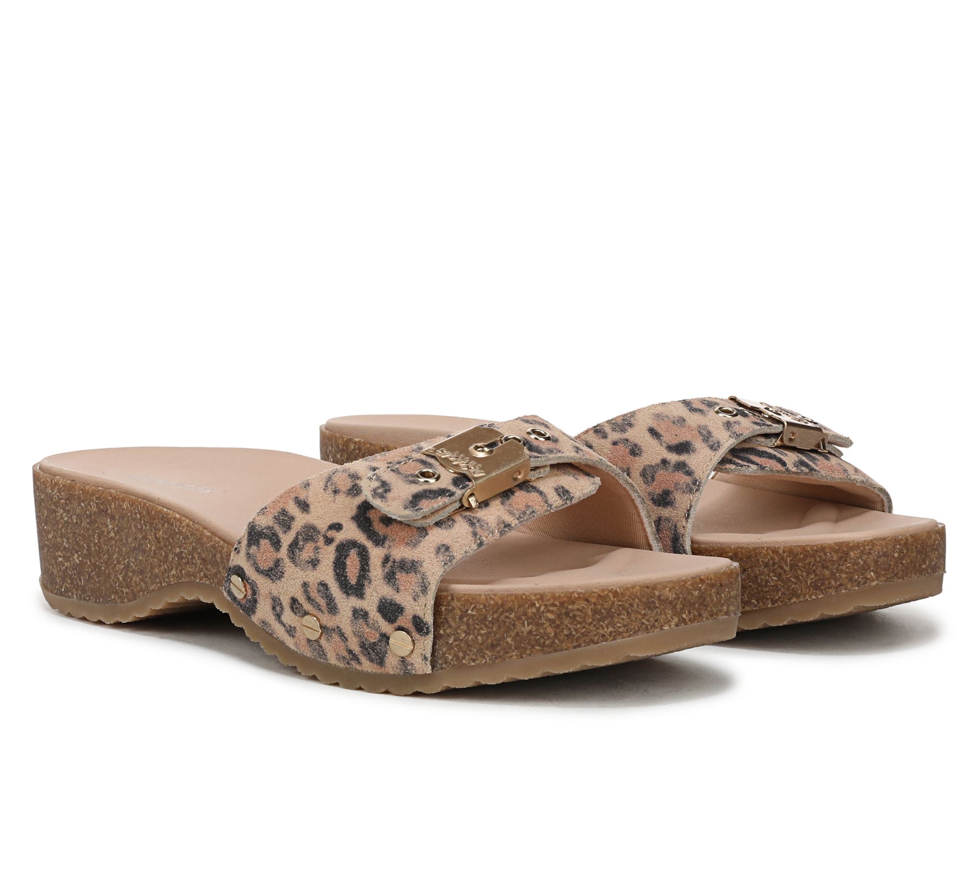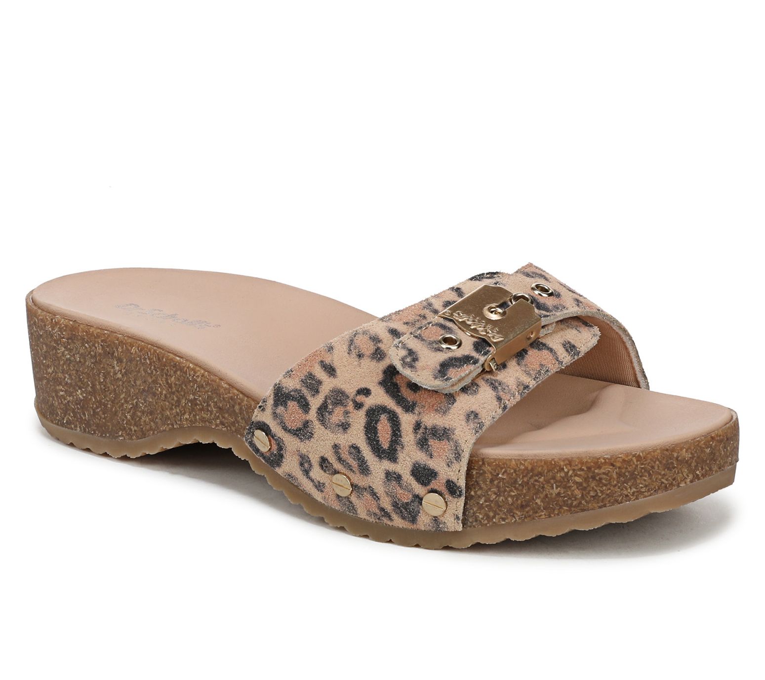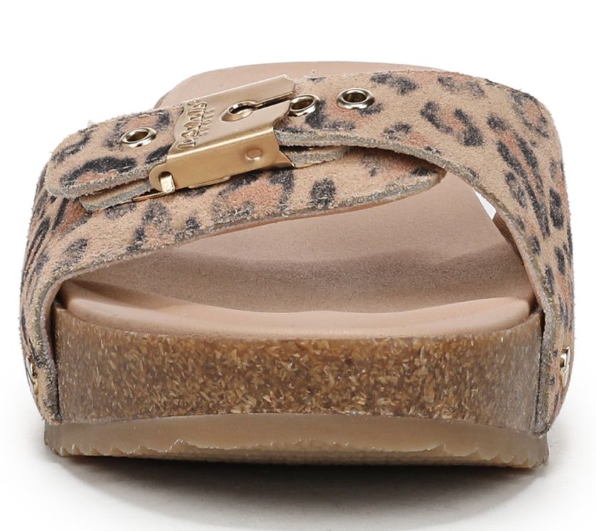 Slip on these leather slide sandals for a day of exploring the city or relaxing at brunch, and enjoy a balance of classic style with a modern, lightweight sole. The signature adjustable metallic buckle and cushioned insole with arch support provide comfort and timeless appeal that adapts to your plans. From Dr. Scholl's.