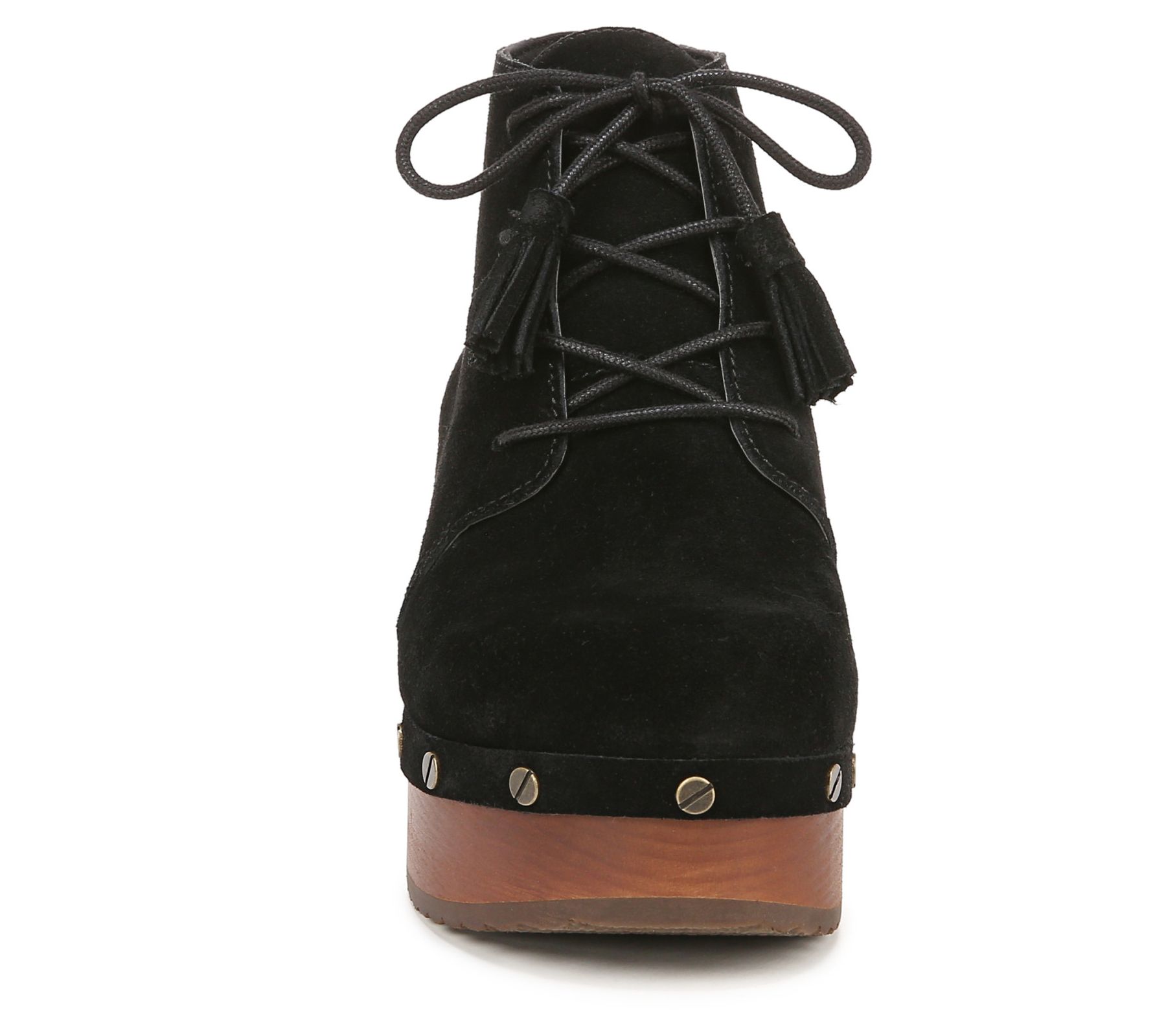 Step into the past with a modern twist with Dr. Scholl's Original Chic clog booties, where vintage flair meets contemporary comfort. These lace-up booties feature tassel and stud detailing, rounded toes, and a real wood heel, creating a timeless look that complements any outfit. Crafted with a commitment to environmental responsibility, these shoes are a step in the right direction for both your wardrobe and the planet. From Dr. Scholl's.