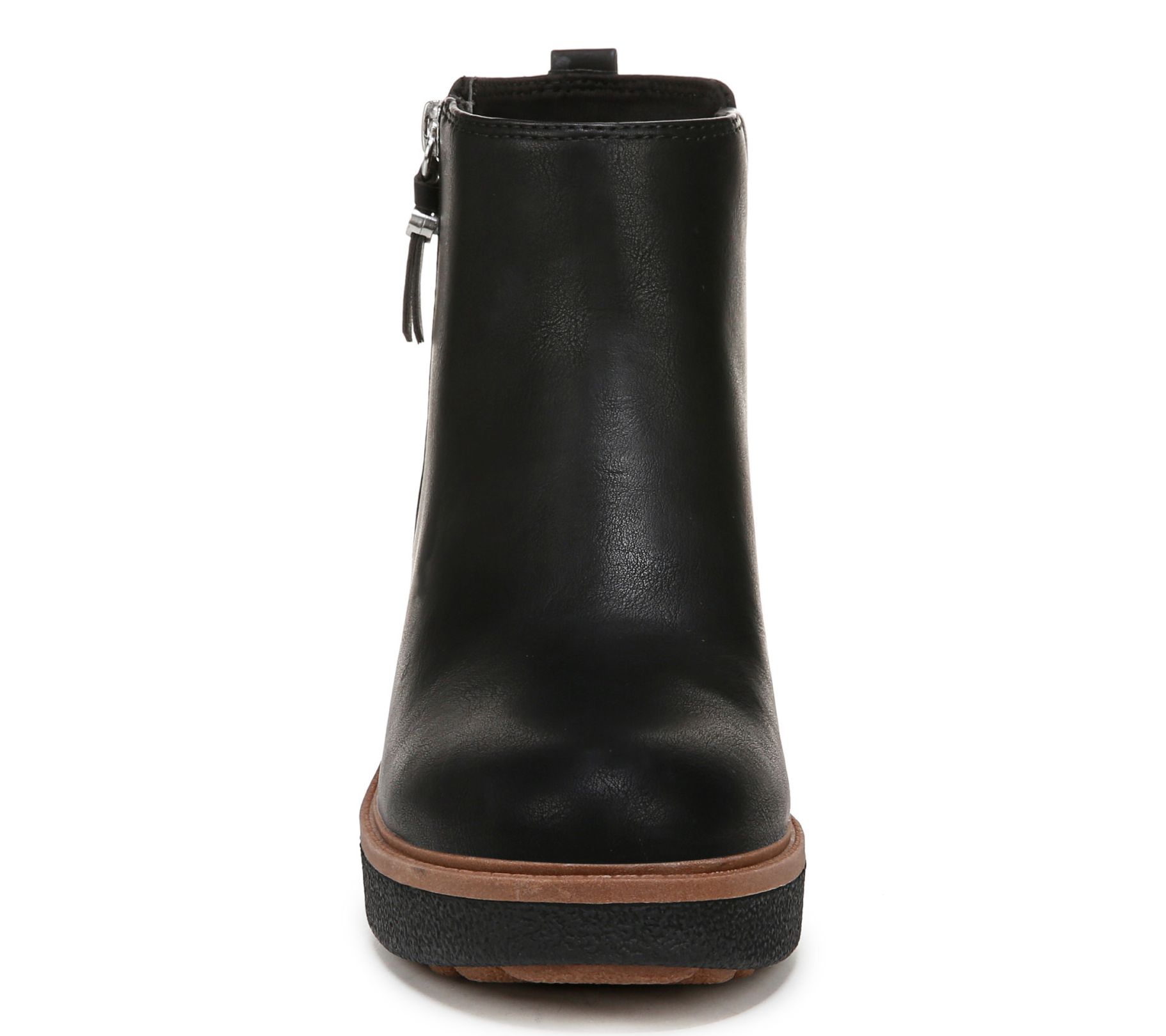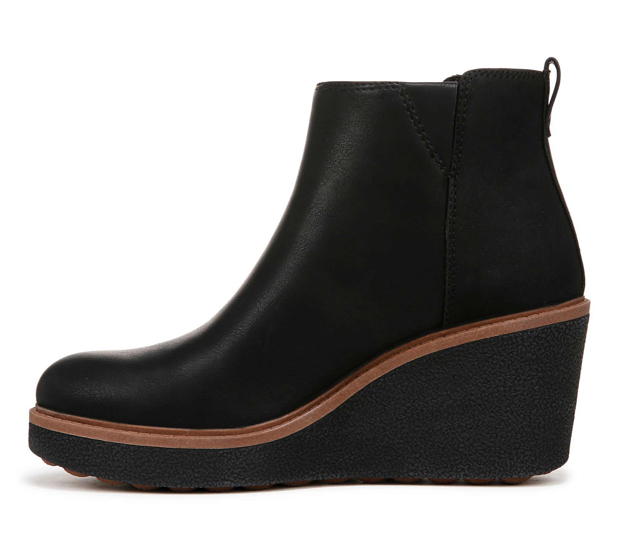 Step into style and comfort with the Dr. Scholls wedge side-zip booties. These versatile booties are perfect for any season, featuring a convenient side zipper and a chic wedge heel that adds a touch of height. The rounded toe and back pull tab make them easy to slip on and off, ensuring you look fabulous with minimal effort. From Dr. Scholls