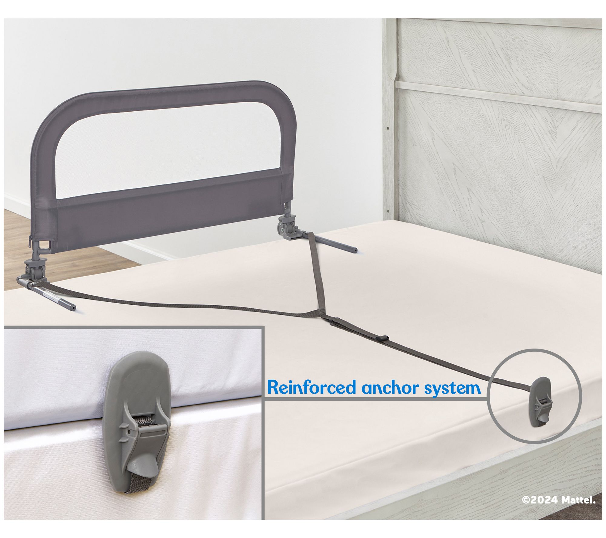 Thoughtfully designed for your little one, this bed rail includes an adjustable anchoring strap that securely fastens to various bed sizes with ease and a convenient swing-down feature (perfect for bedtime stories and quick sheet changes). From Dream On Me.
