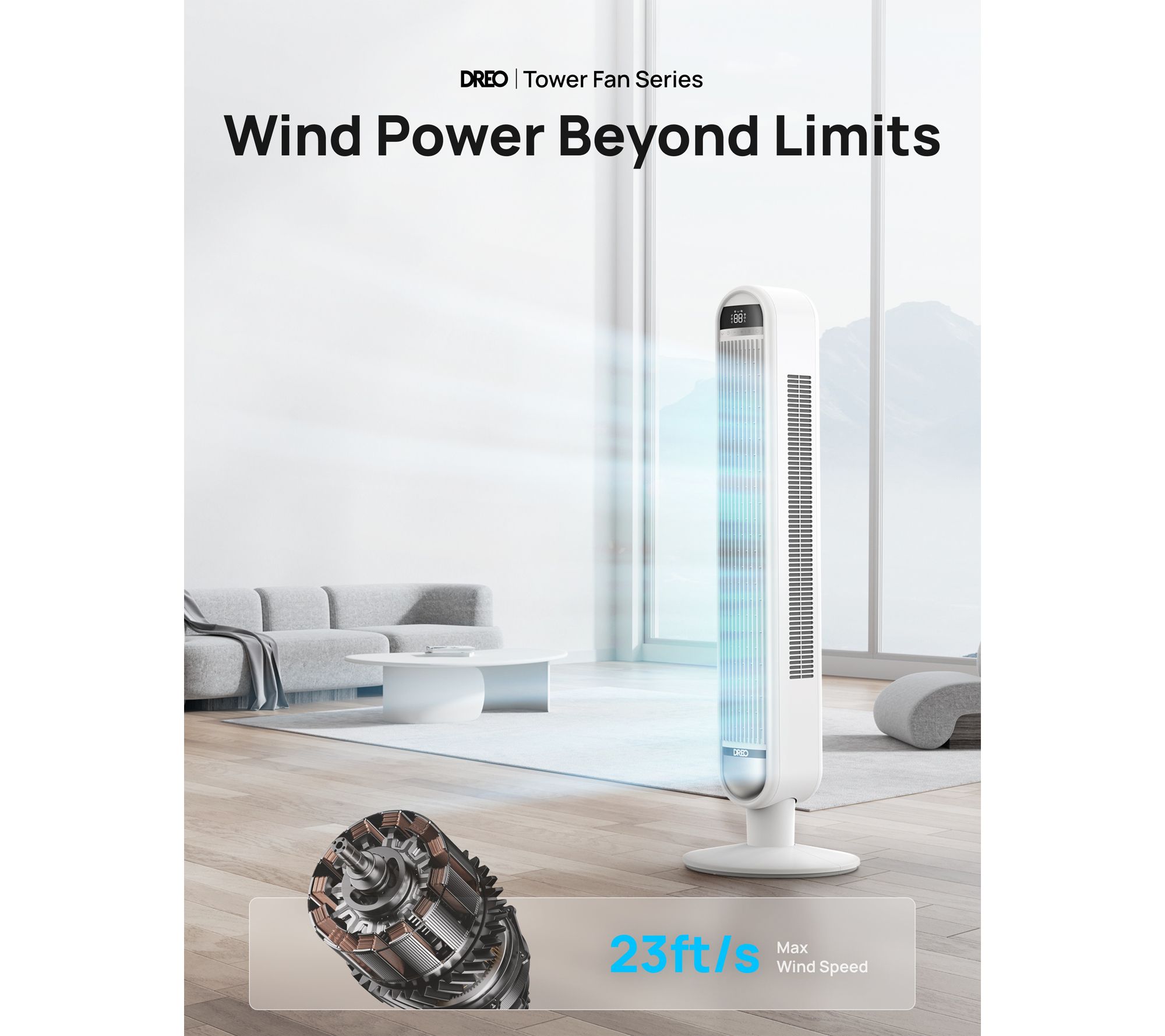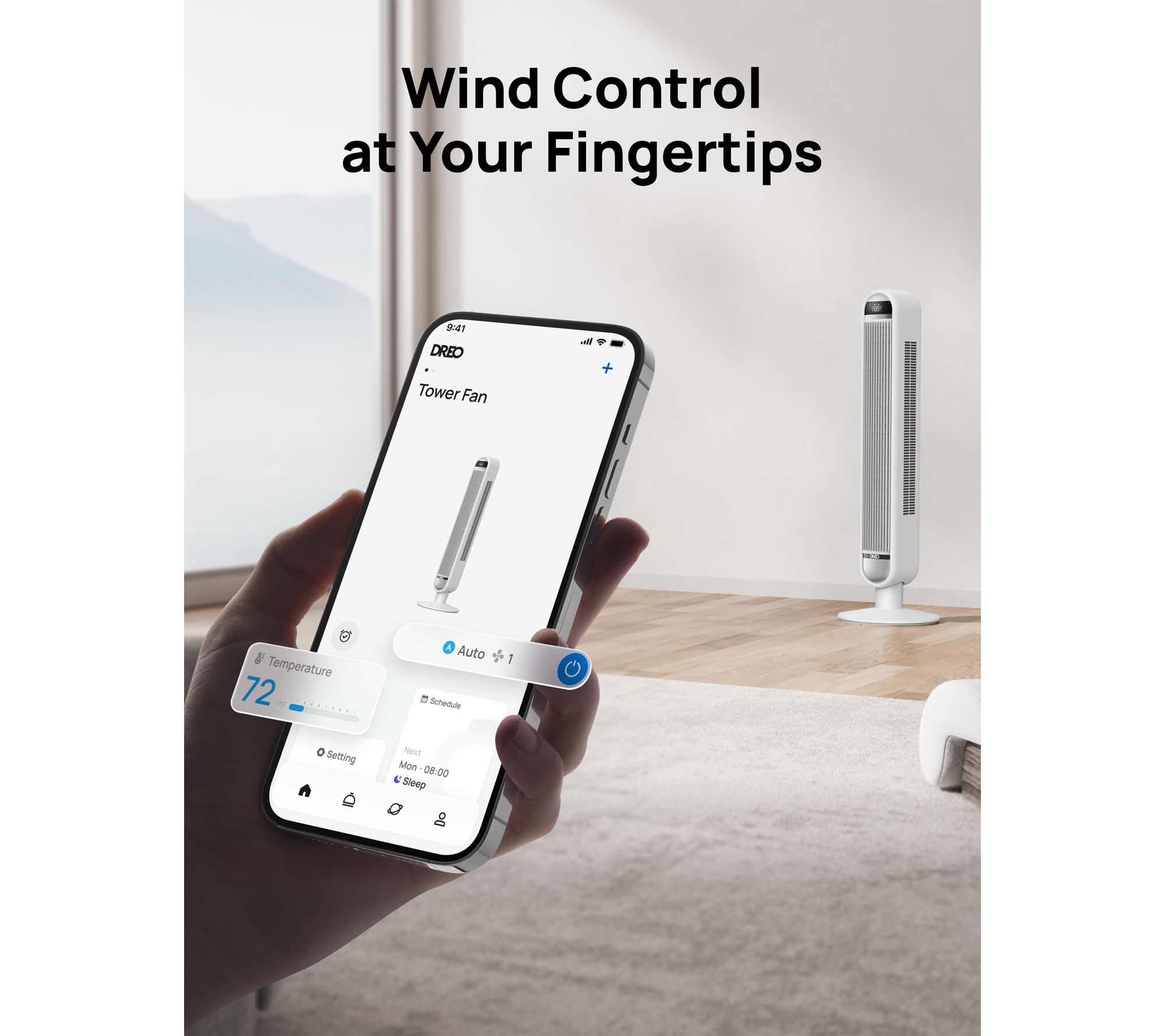 Stay cool and comfortable while enjoying hands-free convenience with this smart tower fan -- ideal for busy mornings, movie nights, or a restful night's sleep. Effortlessly adjust speed or oscillation from your phone or with simple voice commands, and cool every corner of your space with wide oscillation. From DREO.