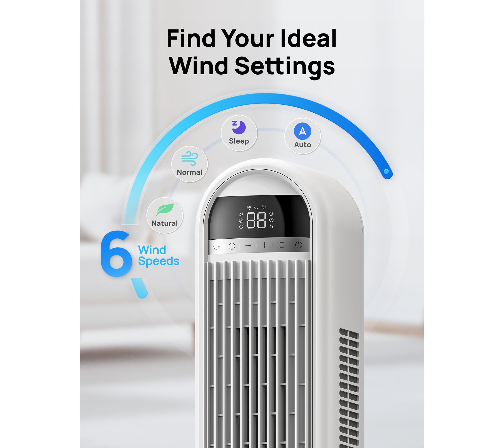 • Six speed settings and four modes (sleep, auto, natural, normal) for customizable comfort