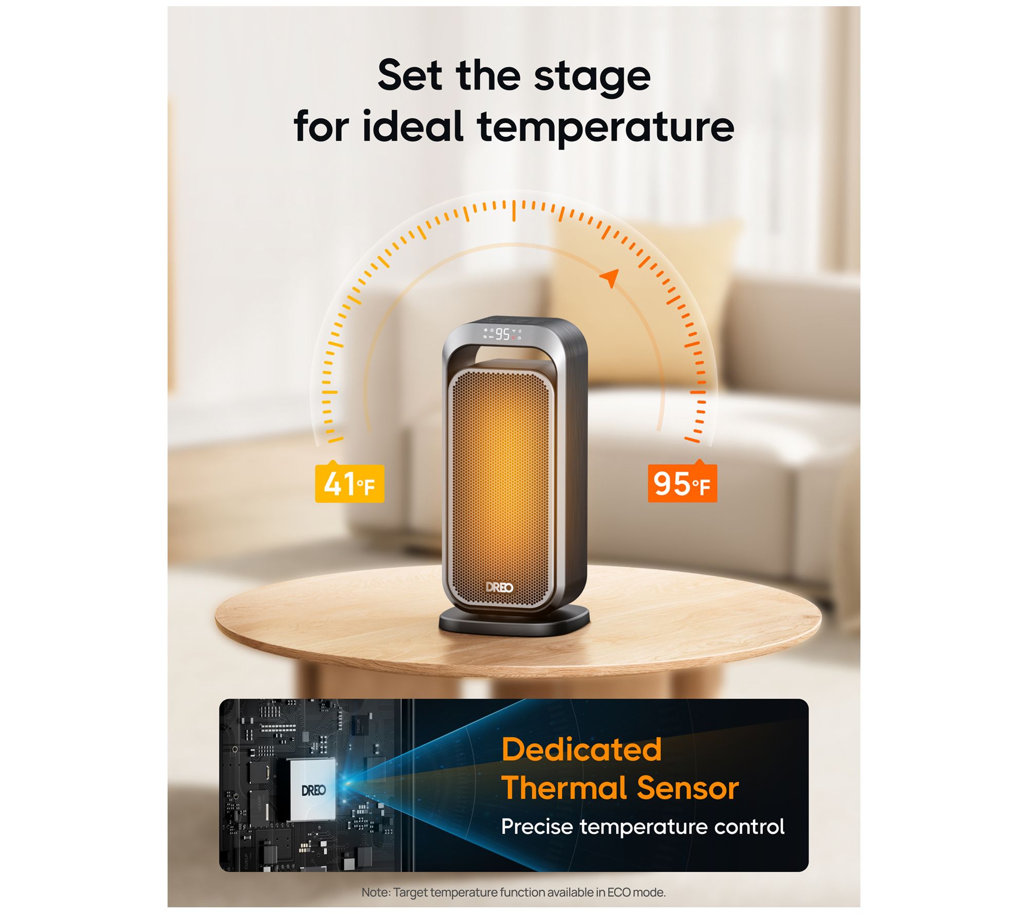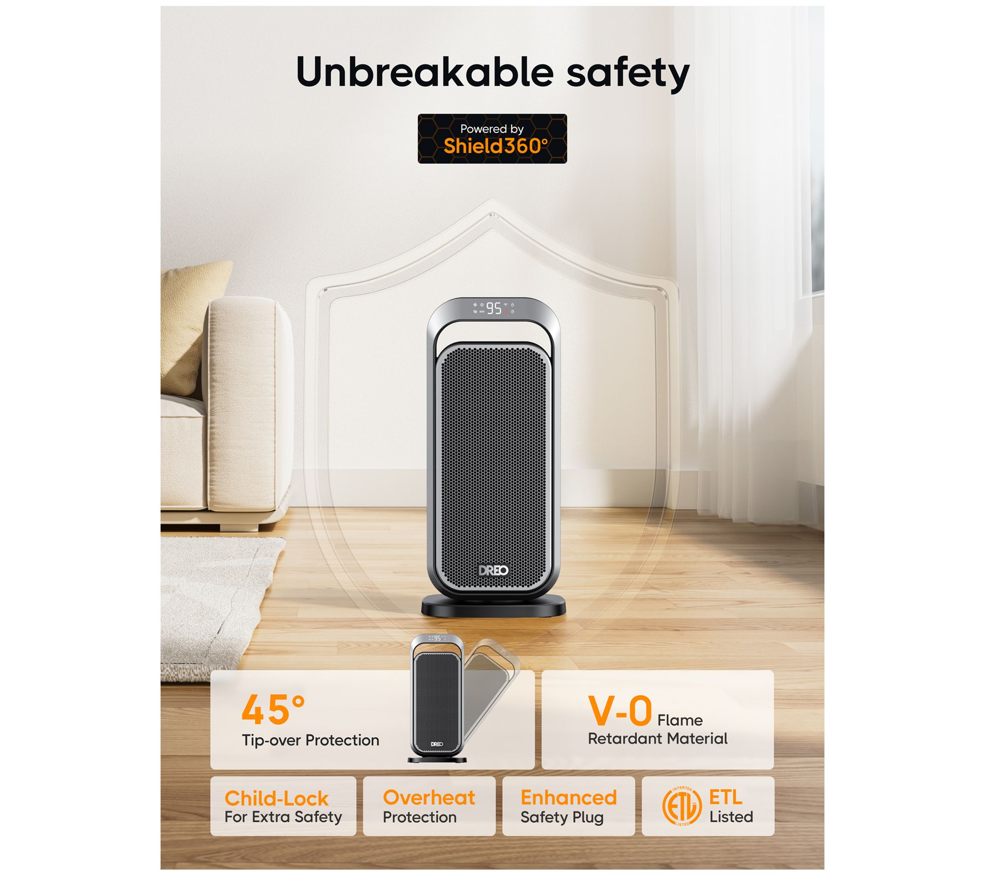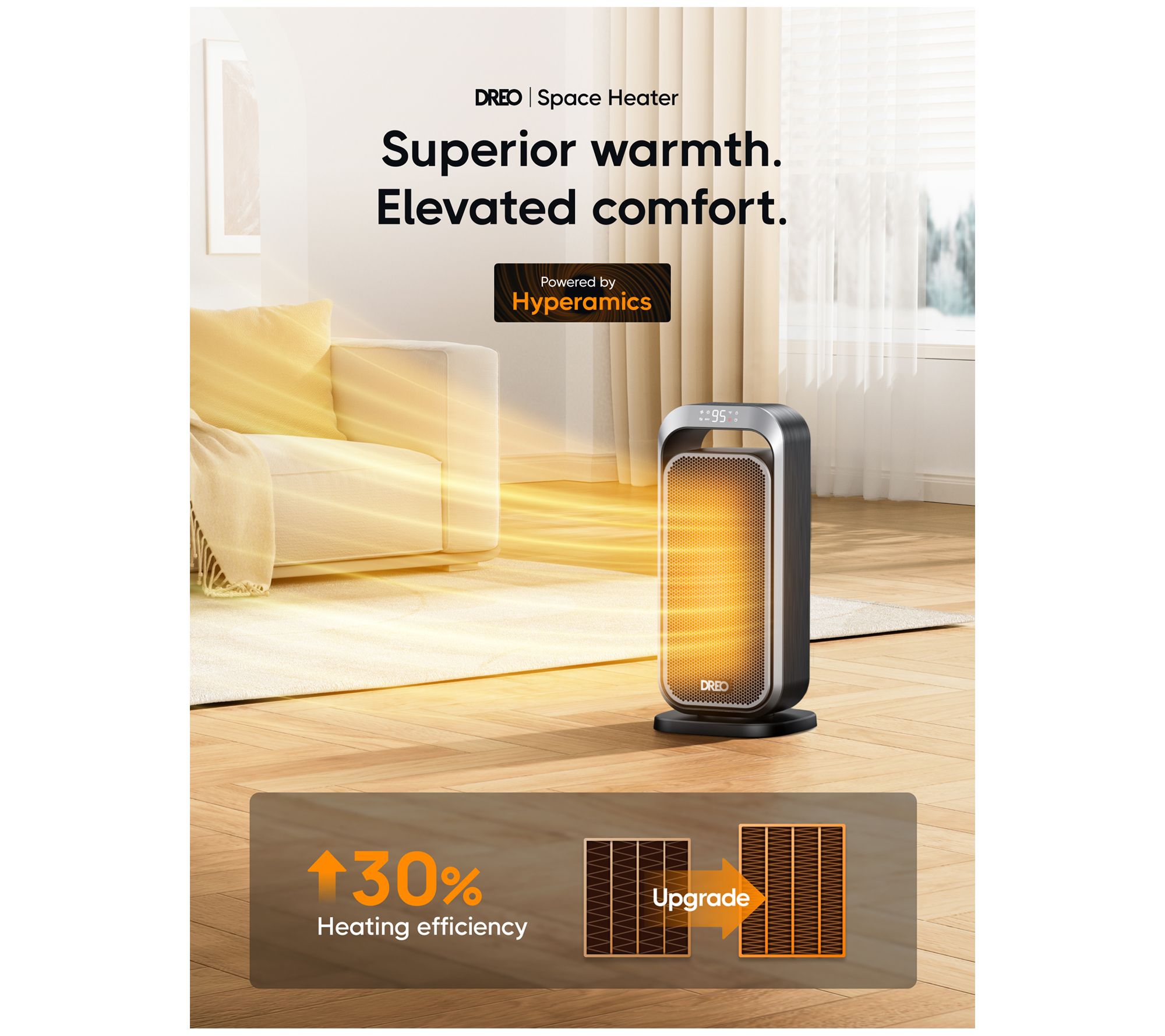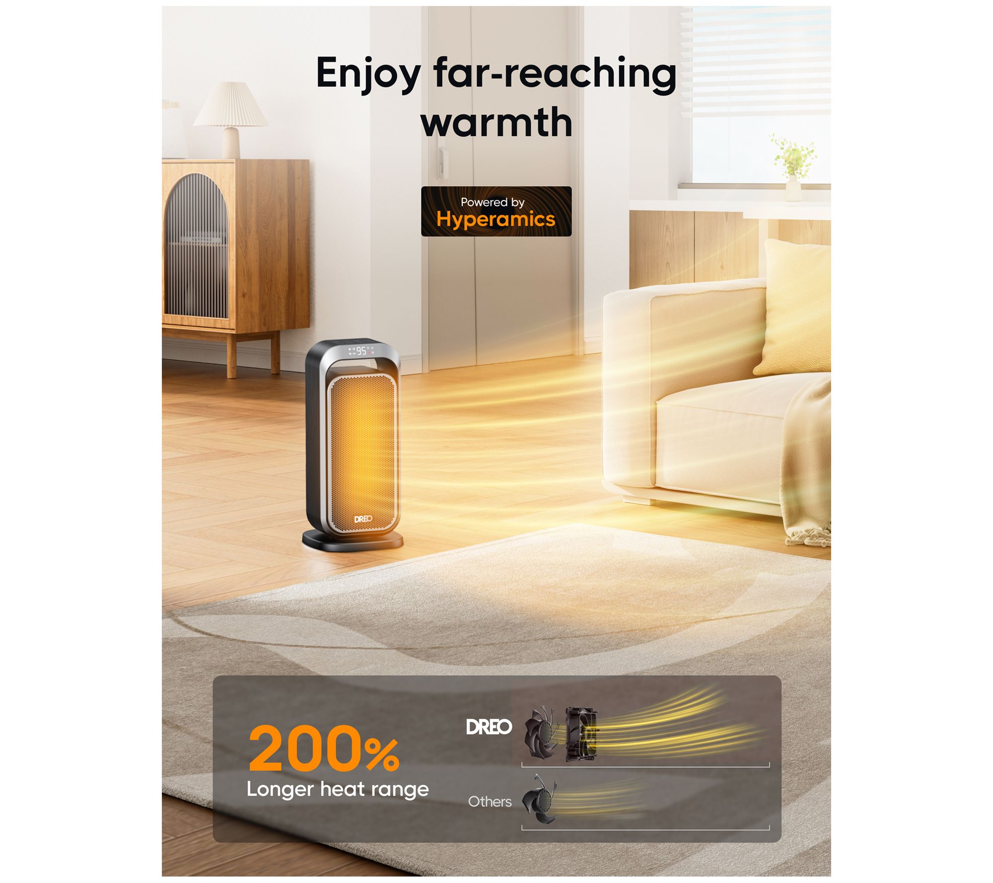 Warm up your space efficiently with the Dreo Solaris 417 portable space heater. Designed to keep areas up to 150 square feet comfortable, the 70-degree oscillation helps distribute heat evenly. From DREO.