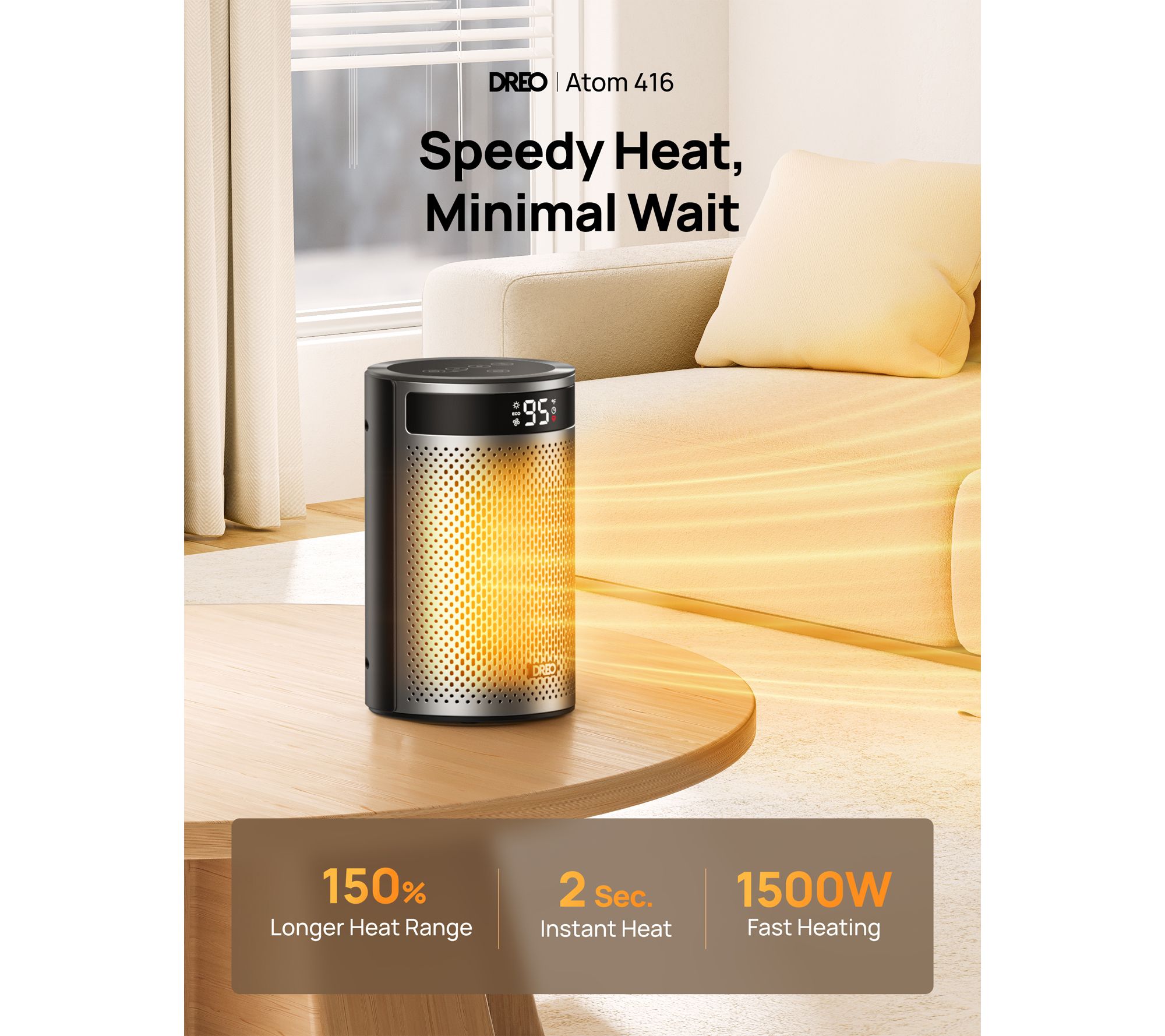 Warm up chilly mornings with this versatile space heater, offering cozy heat for bedrooms, offices, or any space up to 200 square feet. Hyperamics technology delivers quick comfort in just two seconds, while three heat levels and easy remote control let you fine-tune your experience throughout the day. From DREO.