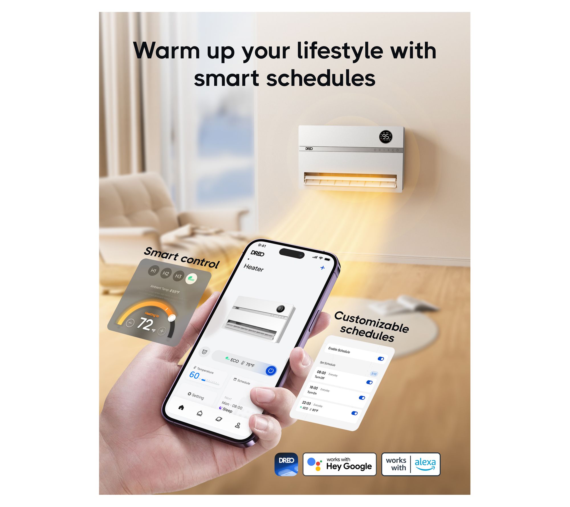 Transform your living space into a cozy haven with this smart wall heater. Its sleek design and smart features, like Wi-Fi connectivity and a digital display, make heating your home both efficient and effortless. From DREO.