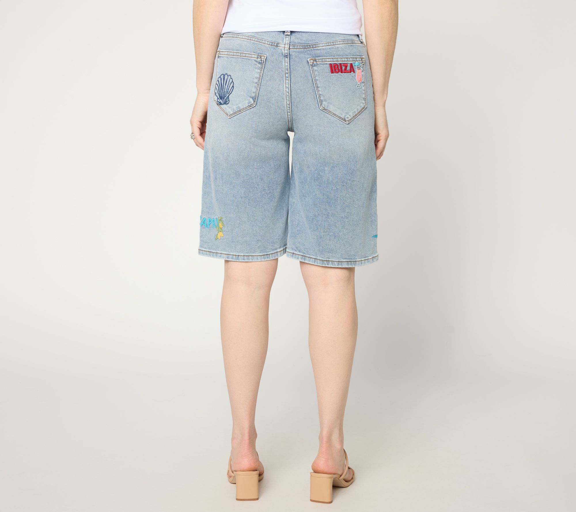 Sunny afternoons, warm evenings, and travel (lots of travel) call for these 12" shorts, styled with charming embroidery. The relaxed fit, wide leg, and just-above-the-knee length offer generous comfort, while five functional pockets and a zipper fly add practicality for your get-up-and-go days. From Driftwood Jeans.