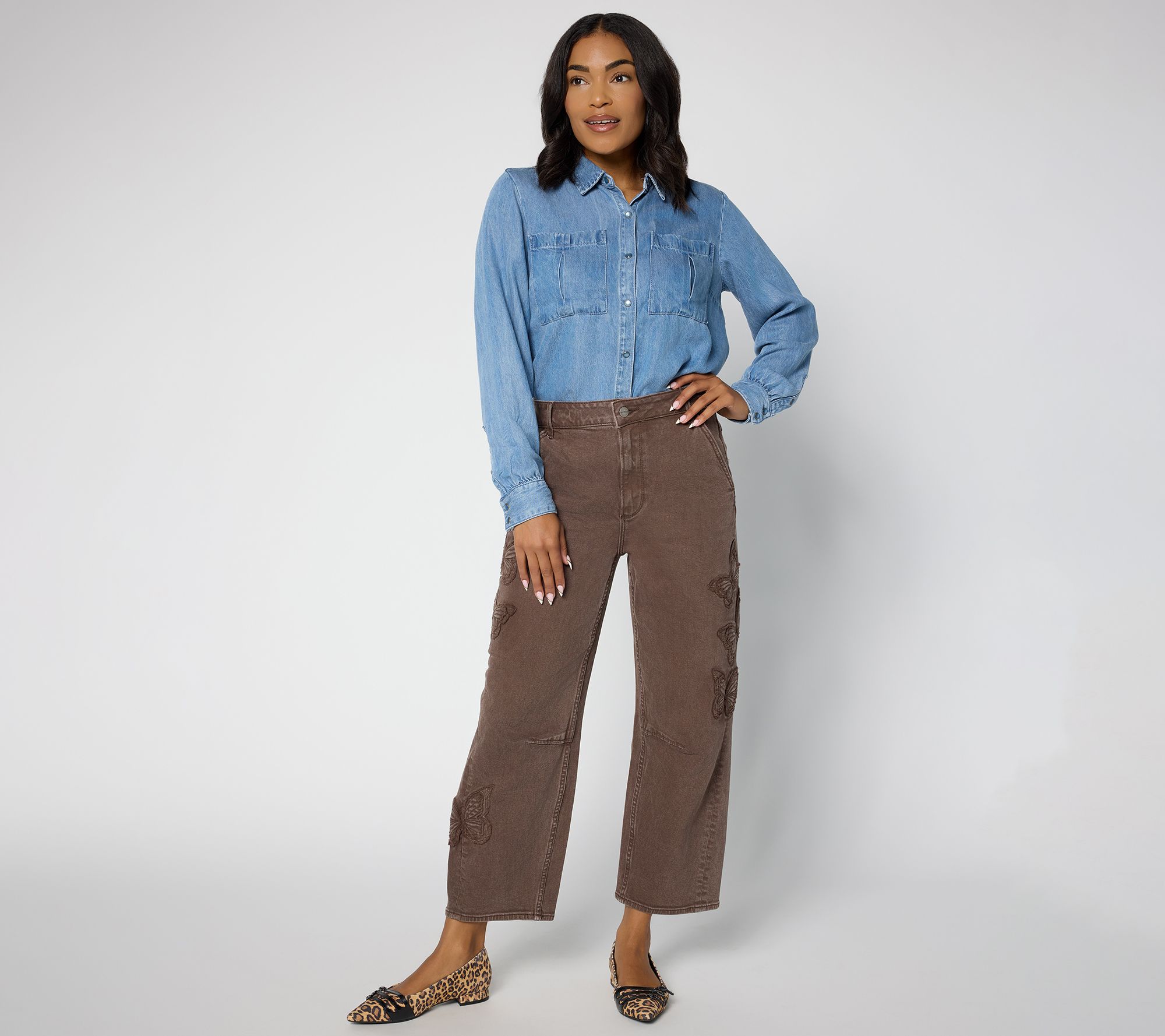 Ready for weekend museum wanderings or exploring local markets, the Barbie barrel jeans are giving chic feels with artisanal edge. The sweet butterfly embroidery turns this casual look into a notice-me moment. Dive into this delicious departure from the ordinary. From Driftwood Jeans.