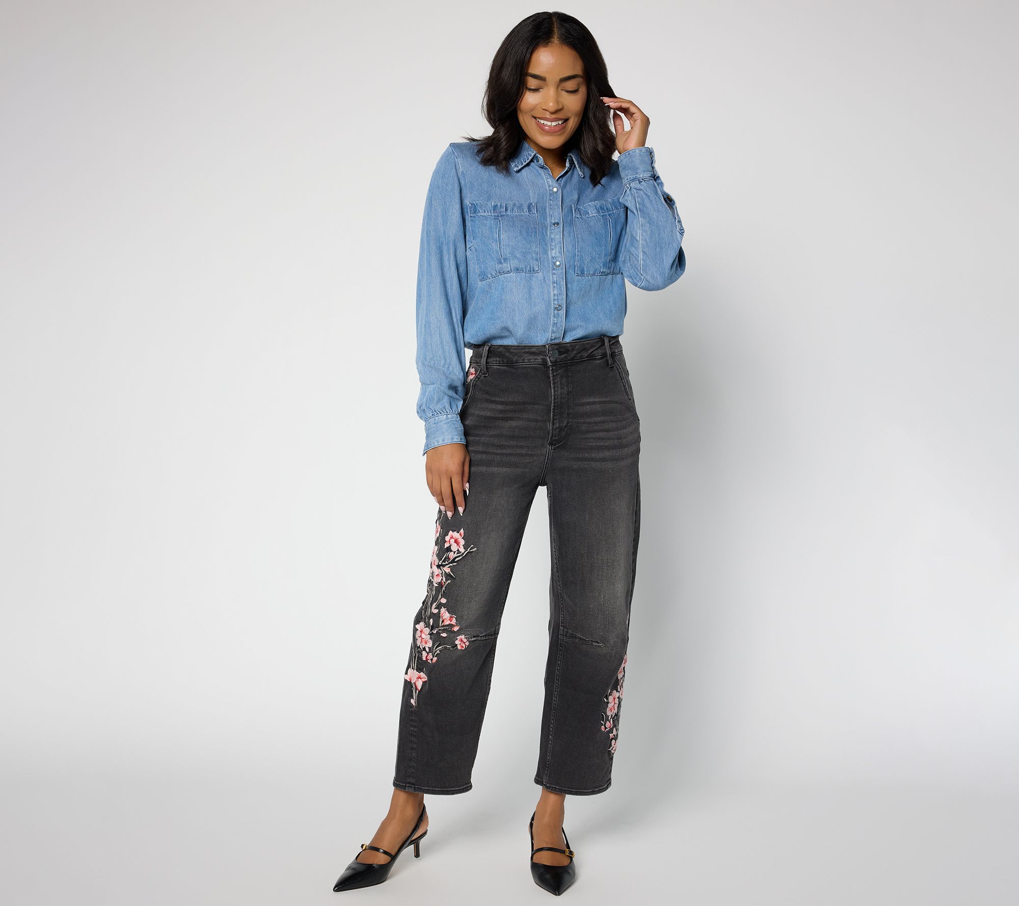 Ready for weekend gallery strolls or coffee dates at the local roaster, the Barbie barrel jeans are giving chic feels with artisanal edge. The Sakura-inspired floral embroidery turns this casual look into a notice-me moment. Dive into this delicious departure from the ordinary. From Driftwood Jeans.