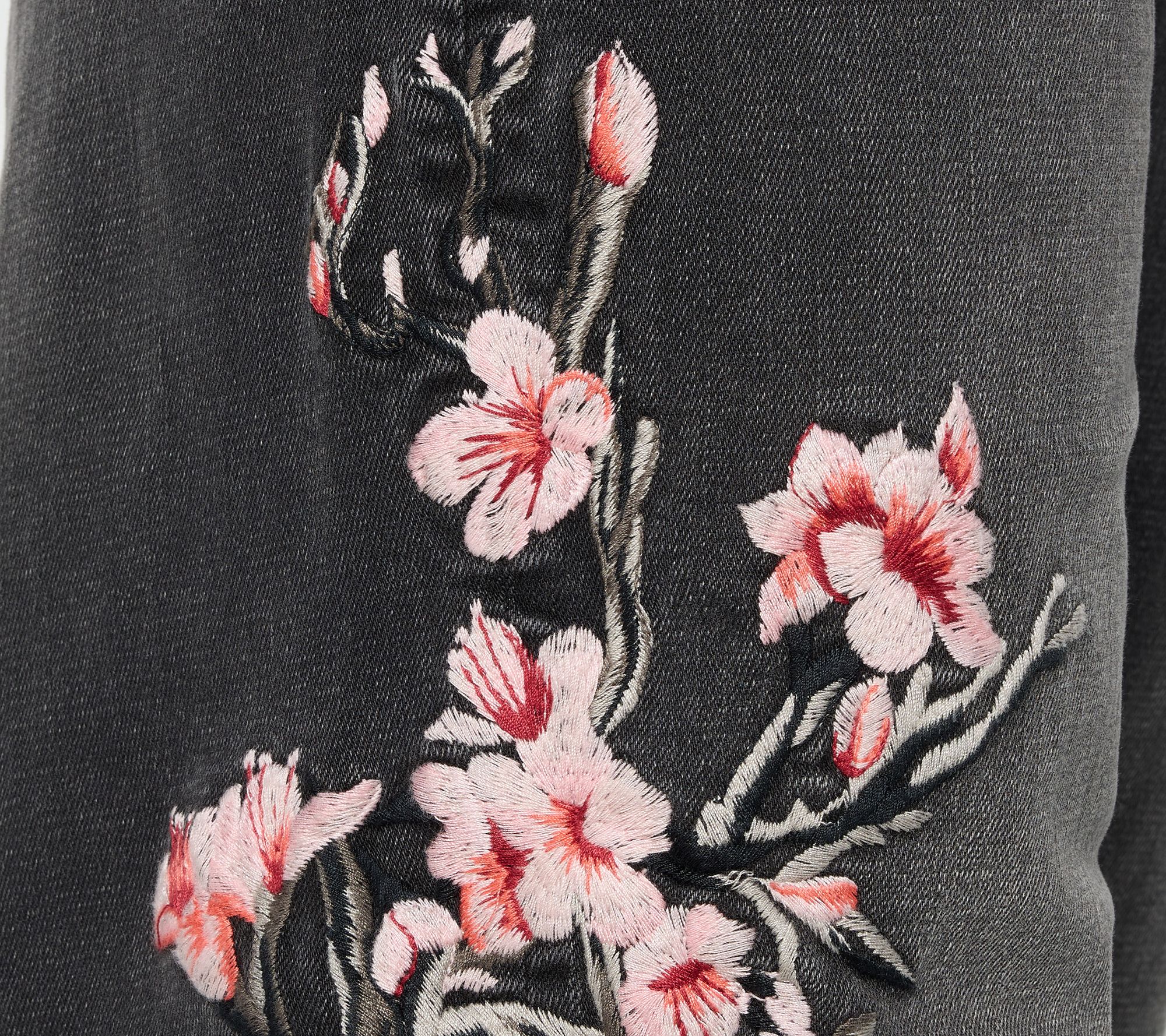 Features: embroidery, slanted front pockets, back patch pockets, ankle length